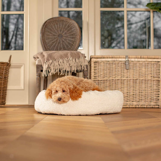 Box Bed With Removable Covers in Ivory Bouclé by Lords & Labradors