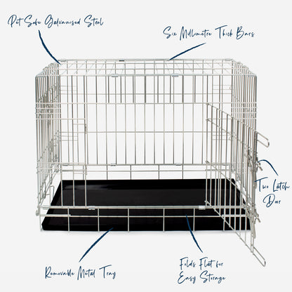 The Lords & Labradors Deluxe dog crate comes with thicker bars than a standard crate. It's ideal for crate training new puppies and will be loved them well into adulthood. Crate training helps settle new pups and get them swiftly into their night-time routine. We'd suggest adding one of our crate covers, bumpers and cushions to create the ultimate doggy den - a luxury dog bed that your dog will use forever!