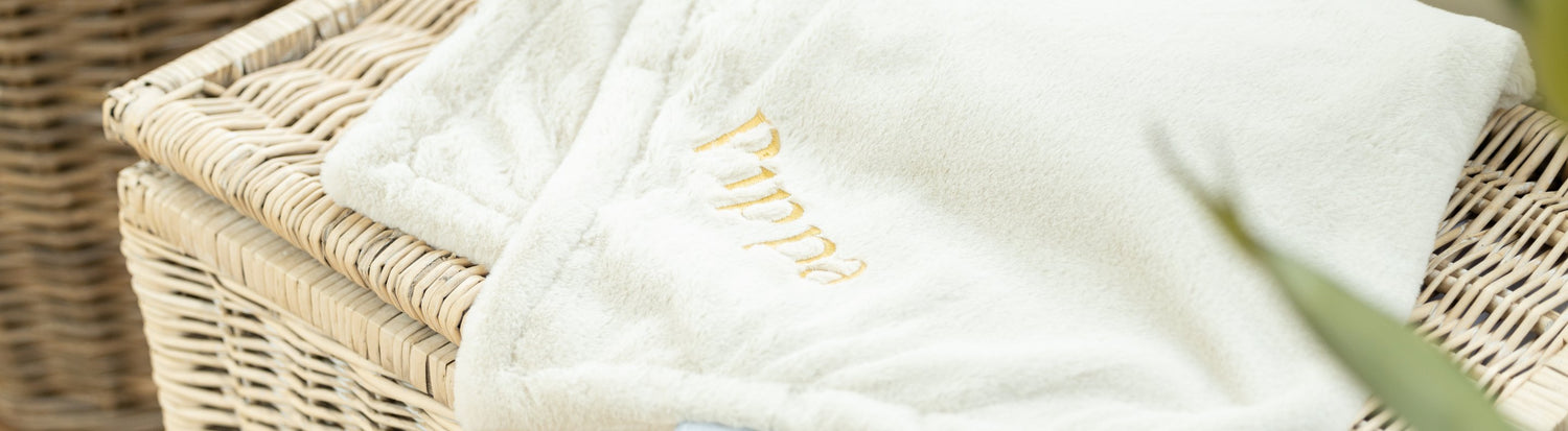 Whichever pet blanket you choose, it can be personalised to make it extra-special for your four-legged friend. Gold embroidery is used to embellish the blanket with your pet's name, adding a lovely finishing touch.