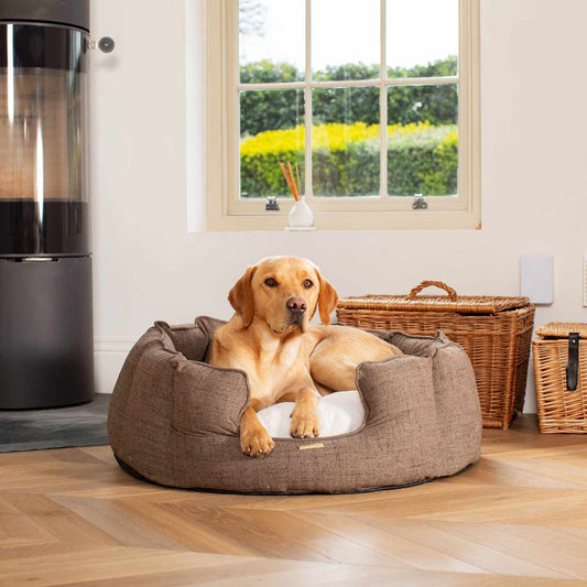 Luxury Handmade Box Bed For Dogs in Inchmurrin Umber, Perfect For Your Pets Nap Time! Available To Personalise at Lords & Labradors