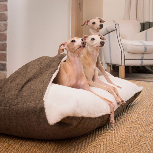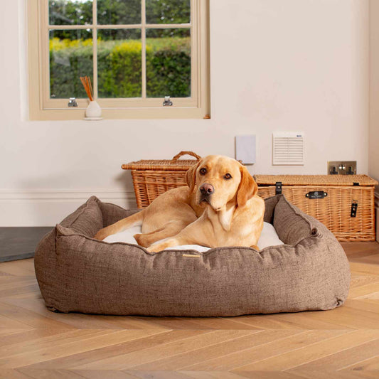 Luxury Handmade Box Bed For Dogs in Inchmurrin Umber, Perfect For Your Pets Nap Time! Available To Personalise at Lords & Labradors Box Bed With Removable Covers In Inchmurrin Umber by Lords & Labradors