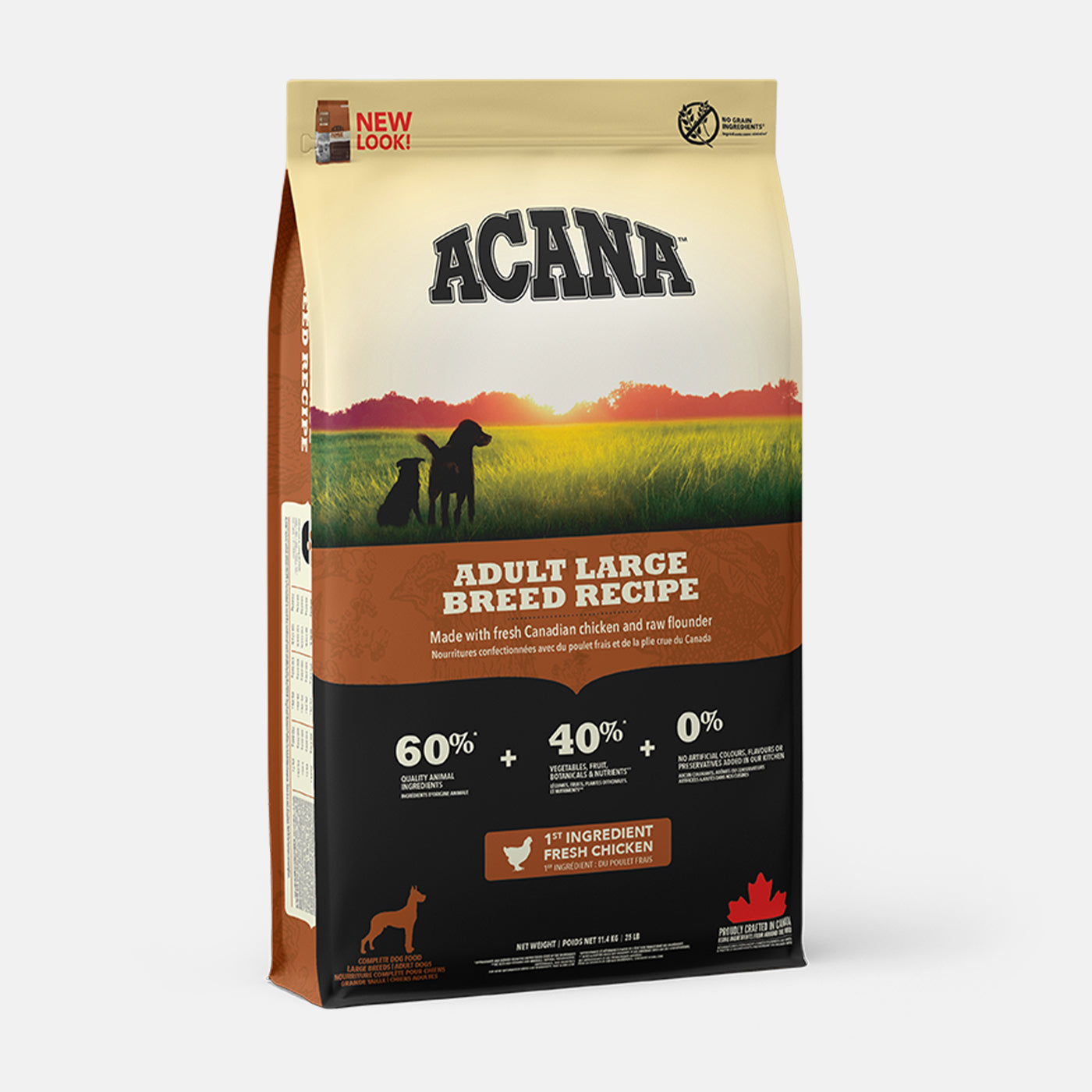 Due to their higher body mass, large breed dogs can experience extra stress on their joints. ACANA Adult Large Breed features rich sources of animal proteins to maintain lean muscle mass, minimizing stress on bones and joints.