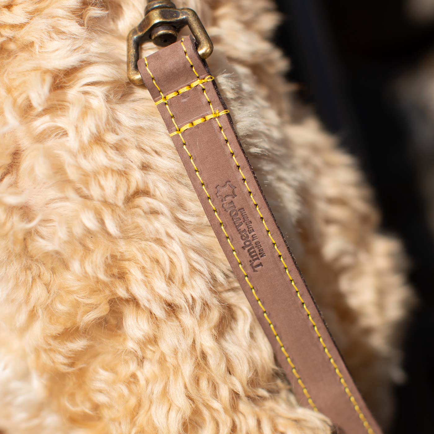 The Timberwolf leather lead is made from top grain bridle leather collar made in the UK. Sewn on both sides for added strength with an antique looking brass clip.