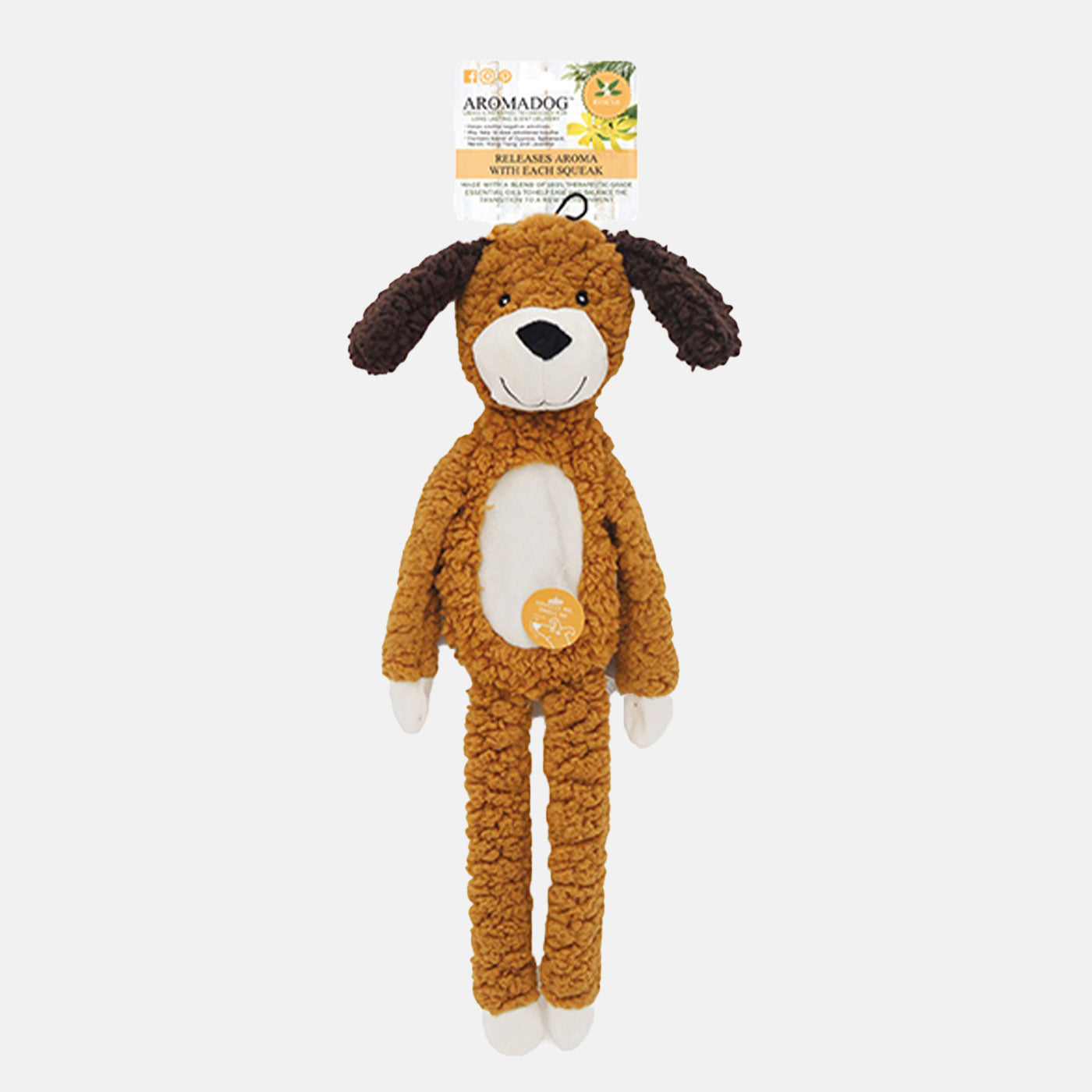 AromaDog Rescue Flattie is a therapeutic toy designed to help soothe emotional trauma in dogs. It contains therapeutic grade essential oils to help alleviate fear, grief, and depression, plus a squeaker to further encourage use. It's a great way to help settle and calm rescue dogs in their new home, or even new puppies.