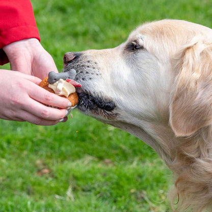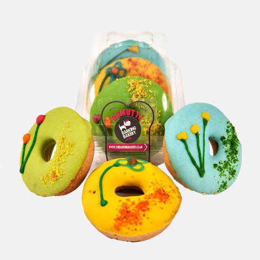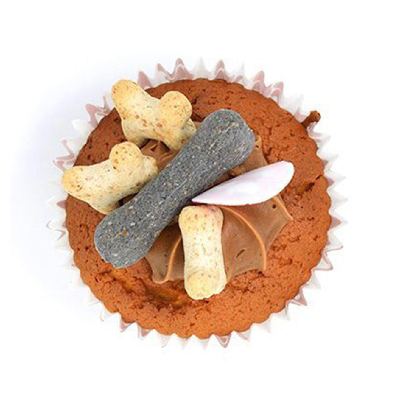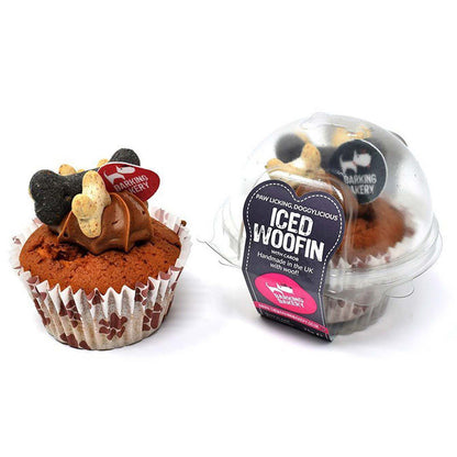 A low calorie carob woofin, lovingly topped with a swirl of Barking Bakery's famous carob yoghurt frosting. Decorated with tasty bones for crunchiness and packaged in an eye-catching clear travel pod to keep them safe and fresh. This delicious muffin shaped dog treat would make a great party snack for a dog's birthday party.