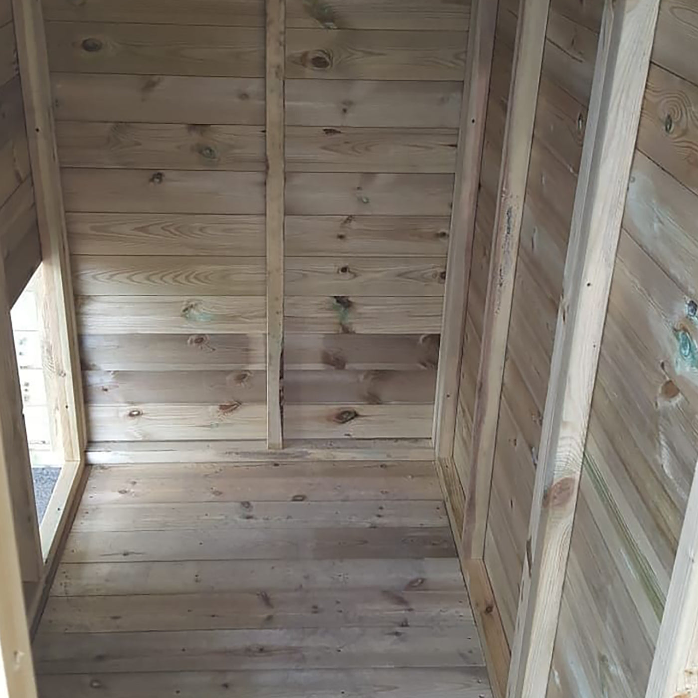 - Built on a 45 x 45mm frame tongue and groove pressure treated floor