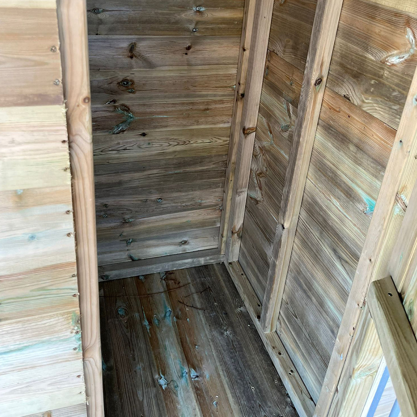 - Built on a 45 x 45mm frame tongue and groove pressure treated floor