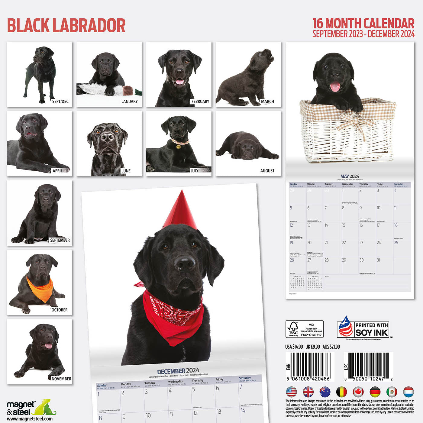 Stay organised in style with our Black Labrador Modern Calendar 2025. This 16 month calendar features a cute themed photo for every month, making it the perfect gift for any Lab lover. With clear grids and a notes section, you can easily keep track of your schedule while enjoying adorable photos of your favourite breed.
