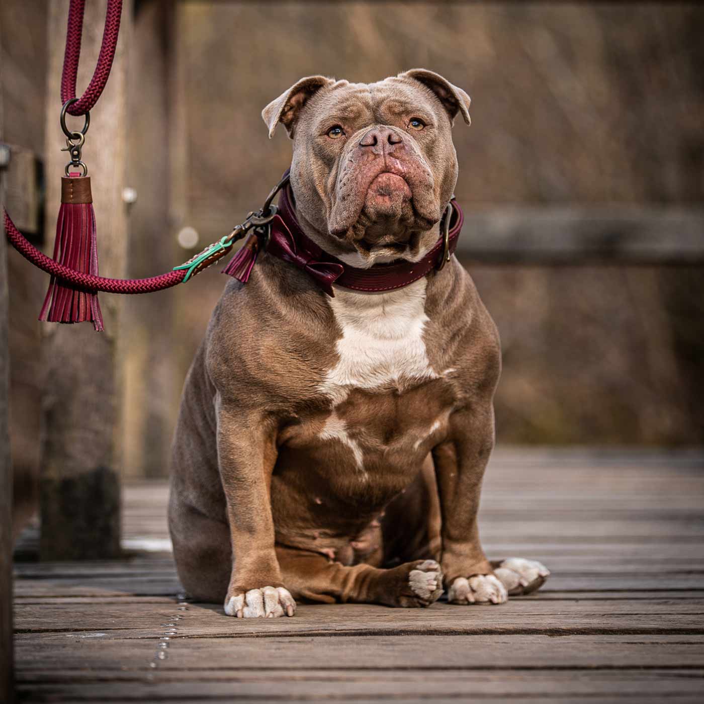 - Walk your pooch in style with this beautiful burgundy lead with leather accents