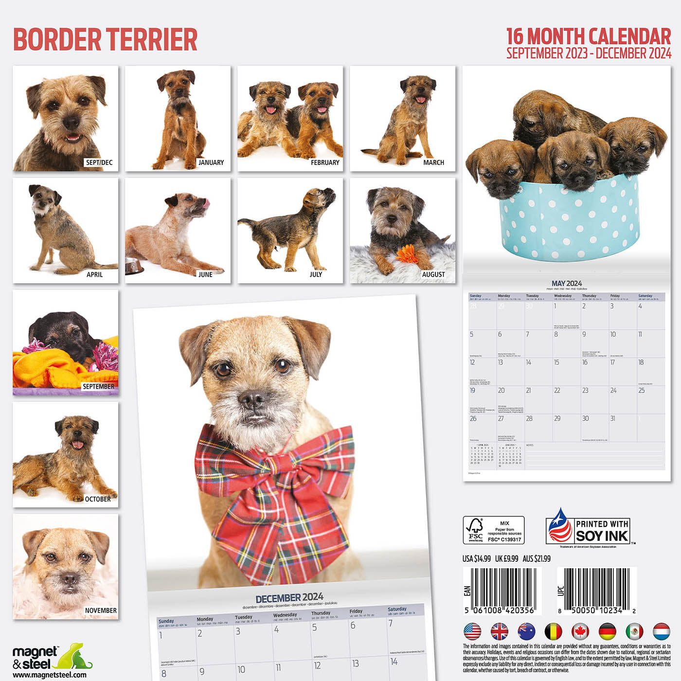 This Border Terrier 2024 Modern Calendar is the perfect gift for any fan of the breed. Each month features a unique and beautiful photo of a Border Terrier, making it a great way to stay organised while enjoying the beauty of these dogs. The clear grids and notes sections also help you stay on top of your activities.