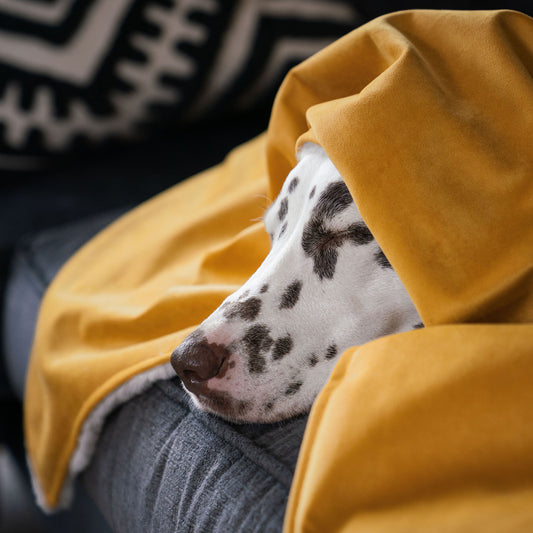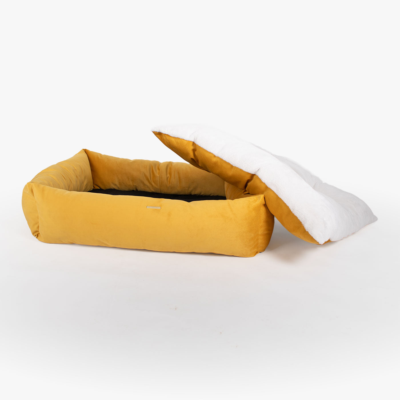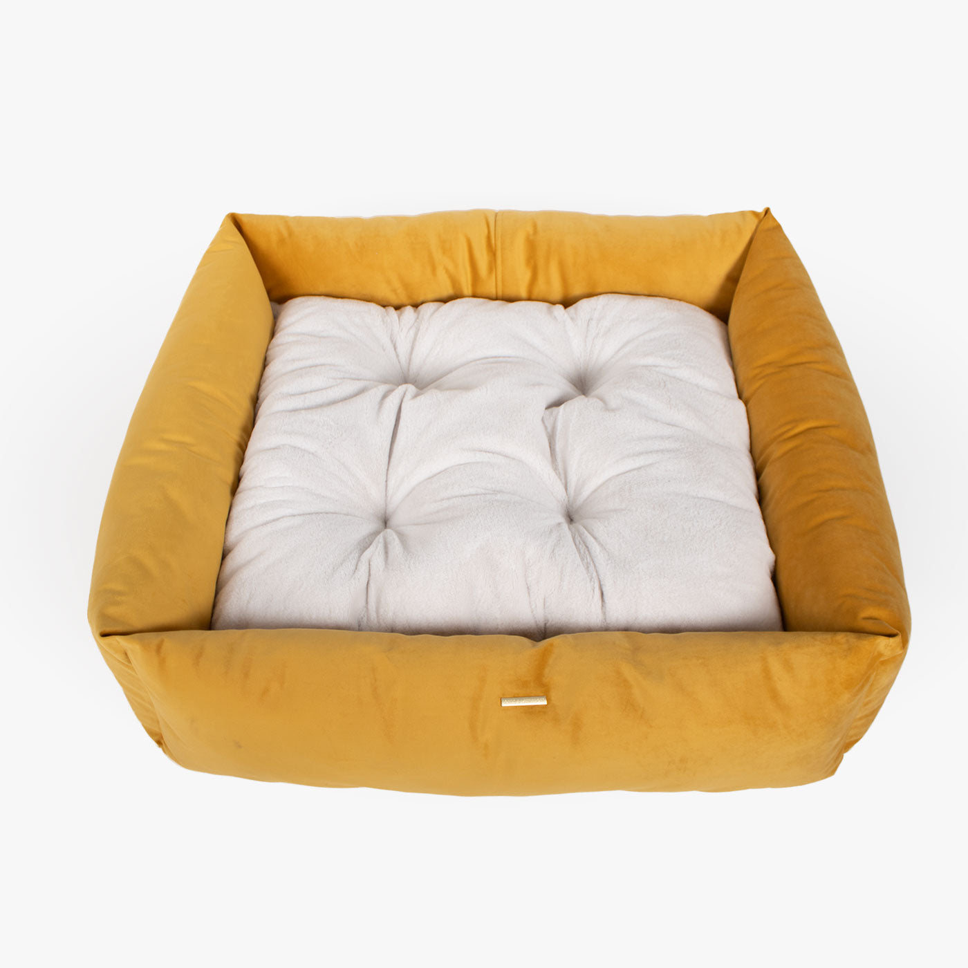 Box Bed With Removable Covers In Saffron Velvet by Lords & Labradors