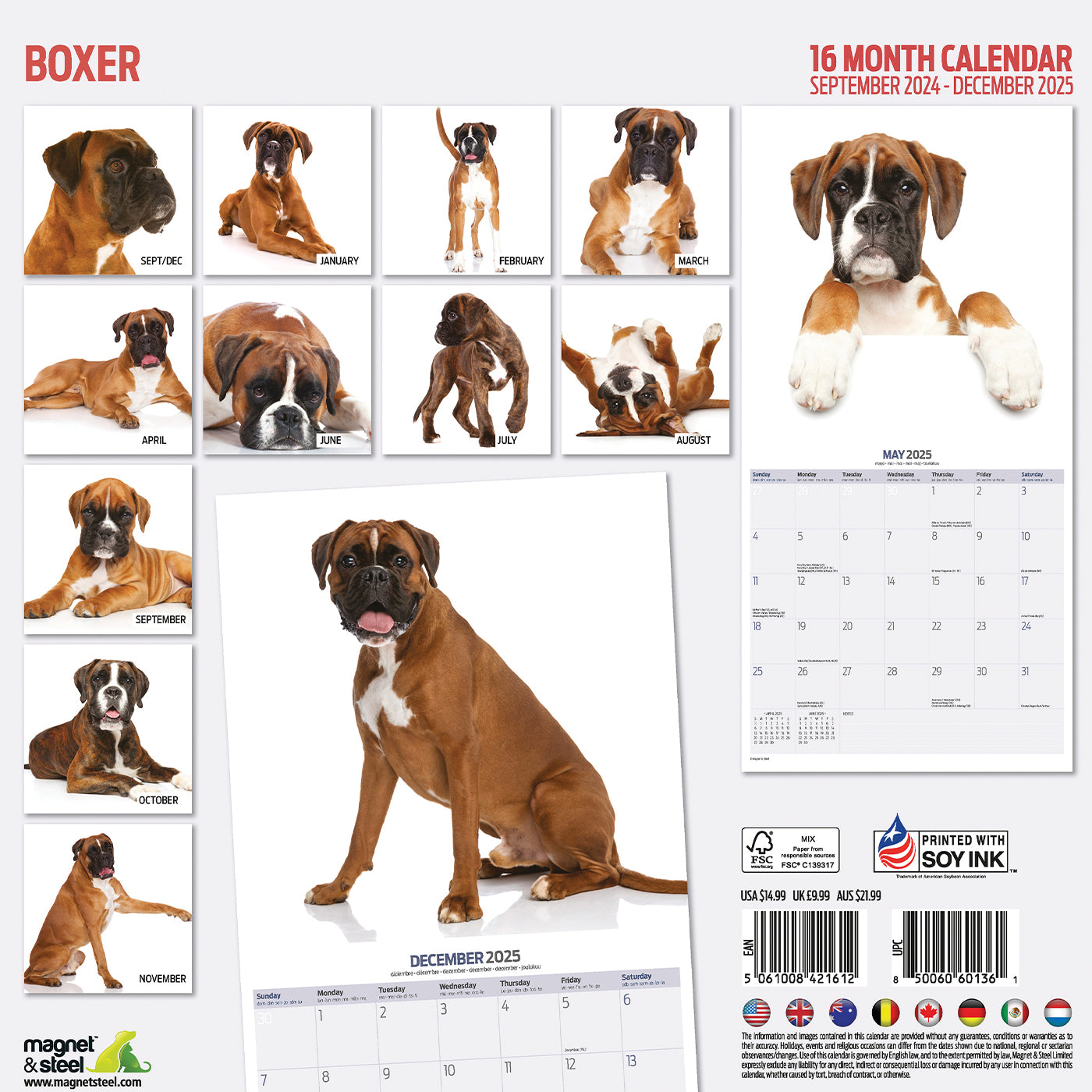 This 16-month Boxer Modern Calendar (September 2024 - December 2025) is the perfect gift for Boxer lovers. Enjoy acute themed photos for every month, paired with clear grids and a notes section to stay organised. Start planning ahead with this modern calendar.