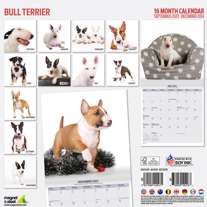 The Bull Terrier Modern Calendar 2025 is the perfect gift for any Bull Terrier lover. With 16 months of adorable, acute themed photos to enjoy from September 2024 to December 2025, it's a must-have for staying organised. The clear grids and notes section make it easy to plan ahead and stay on top of important dates.