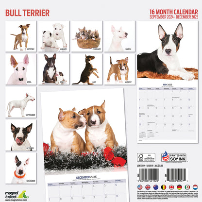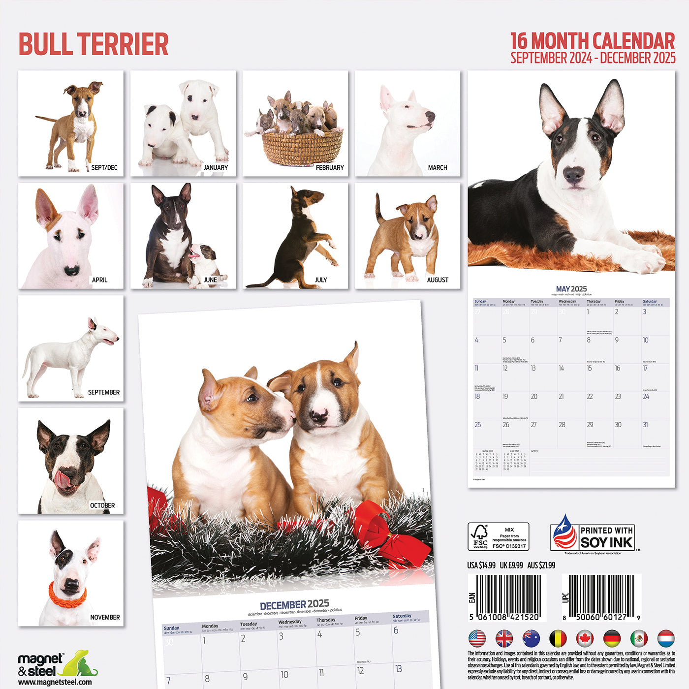 The Bull Terrier Modern Calendar 2025 is the perfect gift for any Bull Terrier lover. With 16 months of adorable, acute themed photos to enjoy from September 2024 to December 2025, it's a must-have for staying organised. The clear grids and notes section make it easy to plan ahead and stay on top of important dates.