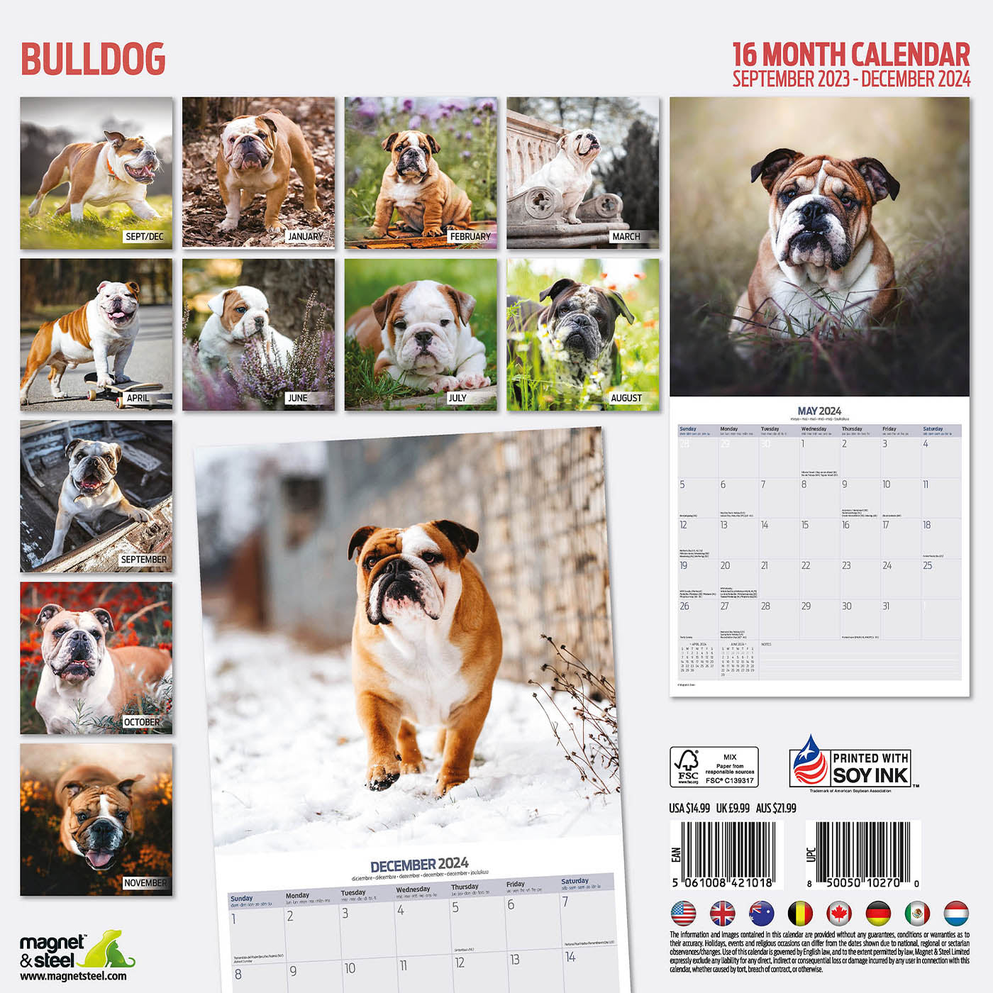 Stay organised and show your love for Bulldogs with the Bulldog Traditional Calendar 2025. This 16-month calendar features a cute Bulldog photo for every month, as well as a clear grid and space for notes. The perfect gift for any Bulldog lover, this calendar covers September 2024 to December 2025. Get yours now!
