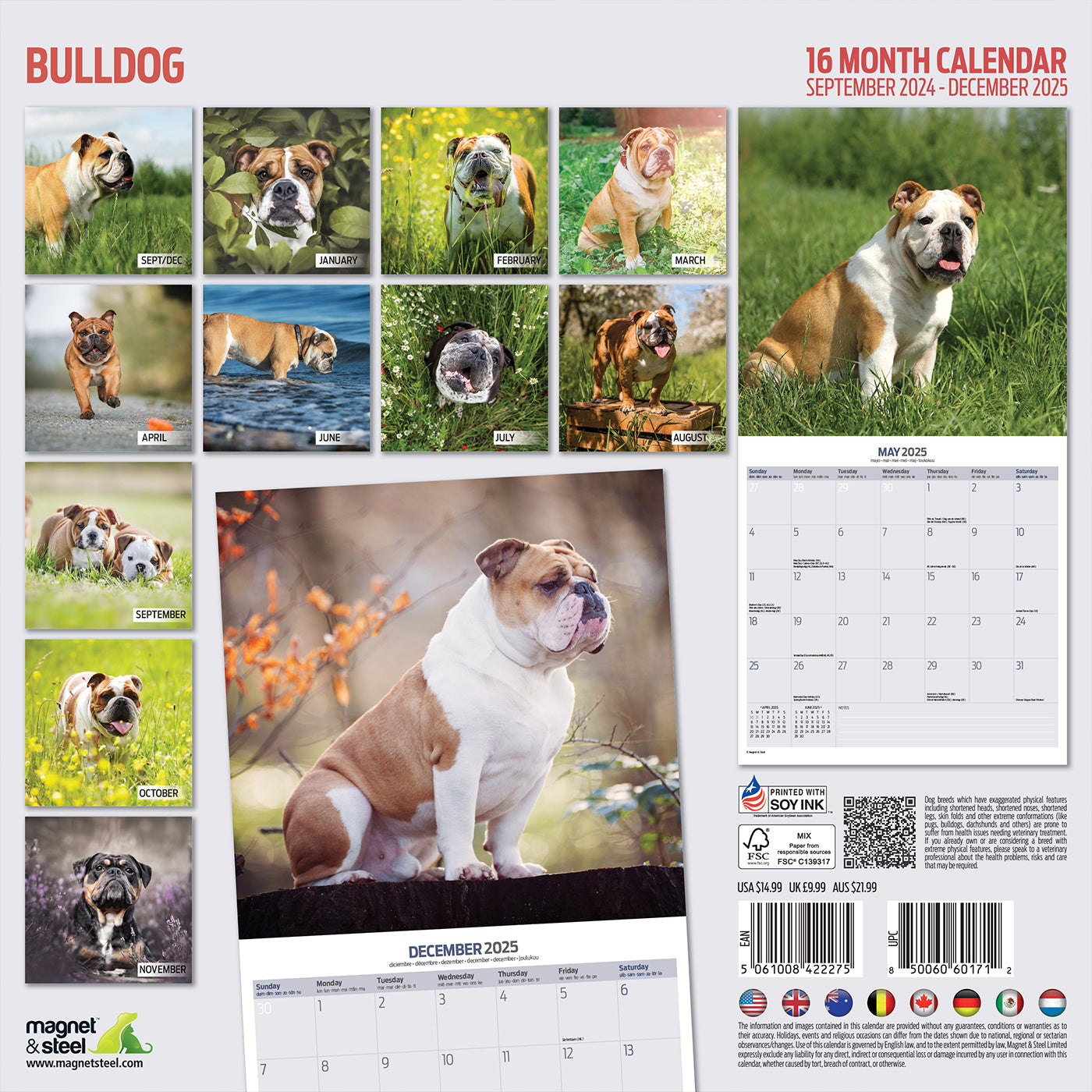 Stay organised and show your love for Bulldogs with the Bulldog Traditional Calendar 2025. This 16-month calendar features a cute Bulldog photo for every month, as well as a clear grid and space for notes. The perfect gift for any Bulldog lover, this calendar covers September 2024 to December 2025. Get yours now!