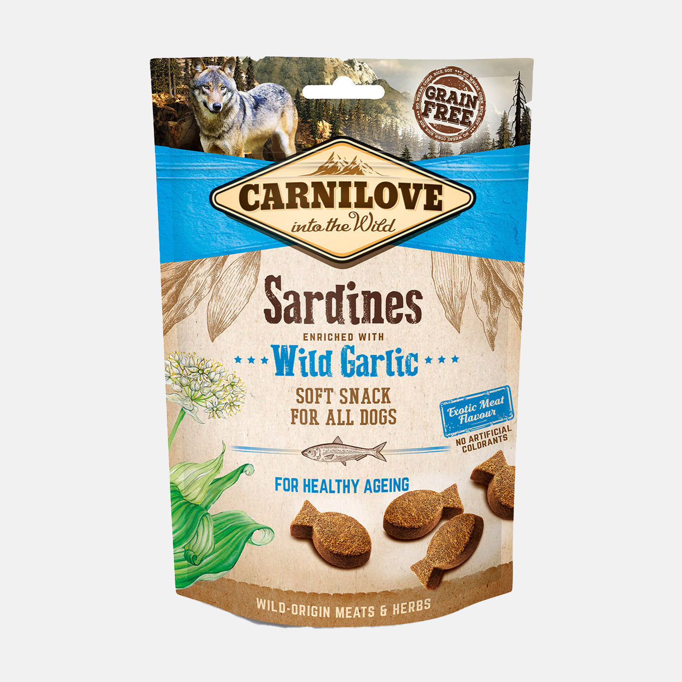 Carnilove Sardines with Wild Garlic Dog Treats are semi-moist treats made with sardines, enriched with wild garlic. They are grain and potato free, with no artificial colourants. Wild garlic helps to promote healthy aging in older dogs. Rely on these nutritious and delicious treats to reward and pamper your pup!
