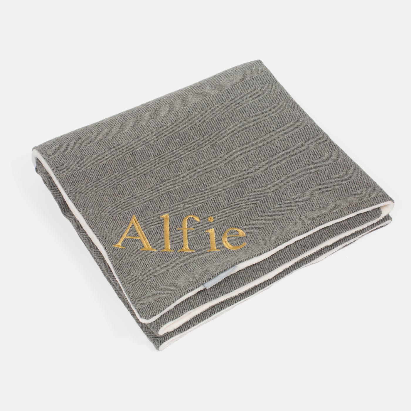 Our luxurious pet blankets are hand crafted from the softest fabrics. This version has a Neutral Tweed on one side and a super soft sherpa fabric on the reverse. The blankets will look fabulous in your home and your cat will adore snuggling up to them at nap-time or bedtime. The blankets come in two sizes so there is a suitable size for every age cat. A lovely piece to add to your cat’s bed or wherever they choose to sleep around the house. They are brilliant for popping in the car for travel. The colours are stylish and will look lovely in any home. They can even be personalised for an extra special finishing touch - just select the personalisation option from the boxes at the top of the page and leave the name in the relevant box. A brilliant gift idea for any kitten of adult cat!