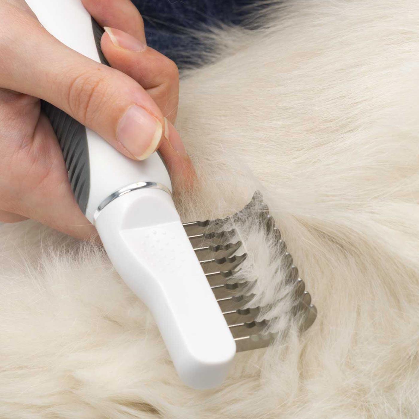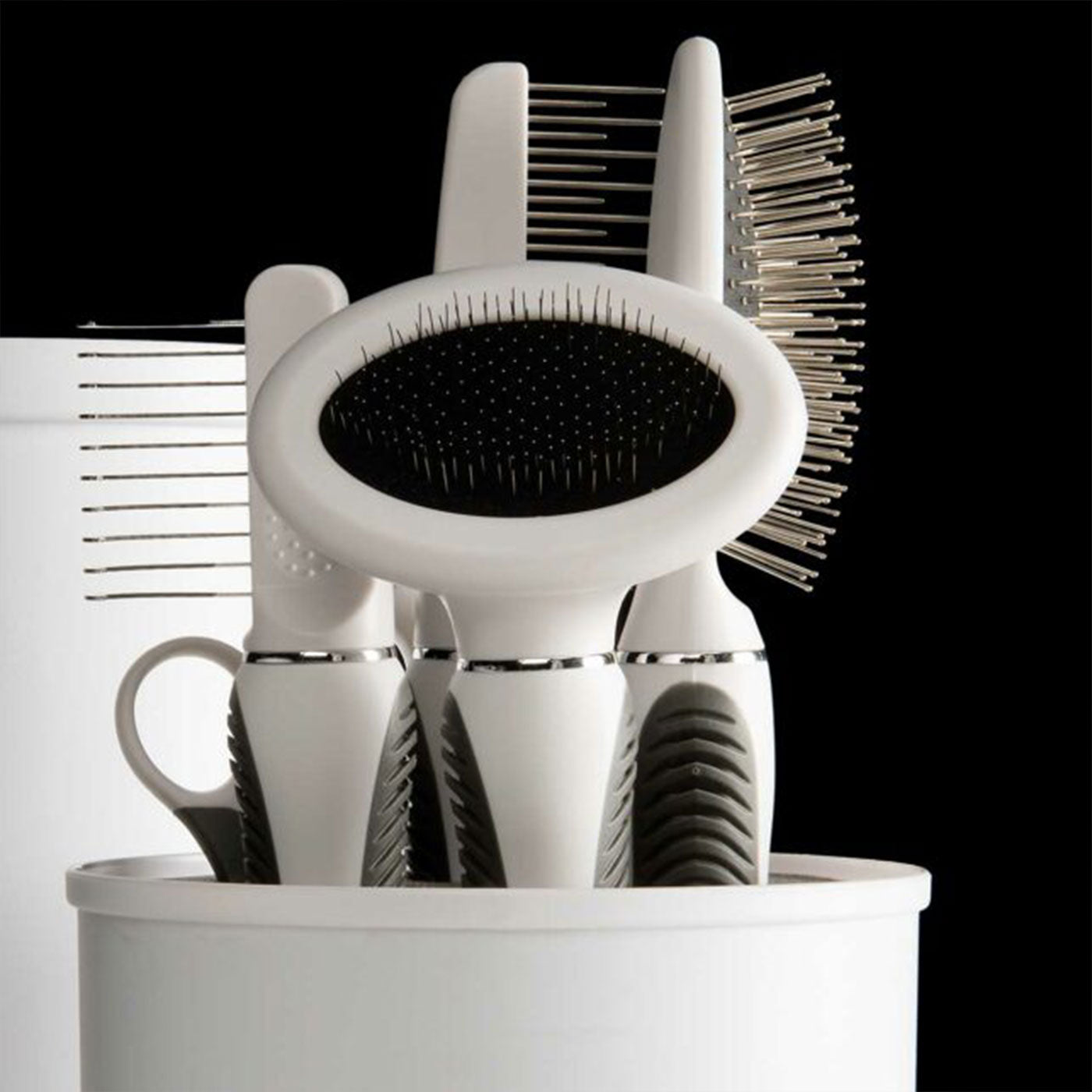 - Contains every tool for daily grooming: pin brush, metal slicker brush, long dematter tool, grooming comb with rolling pins, and curved nail clipper
