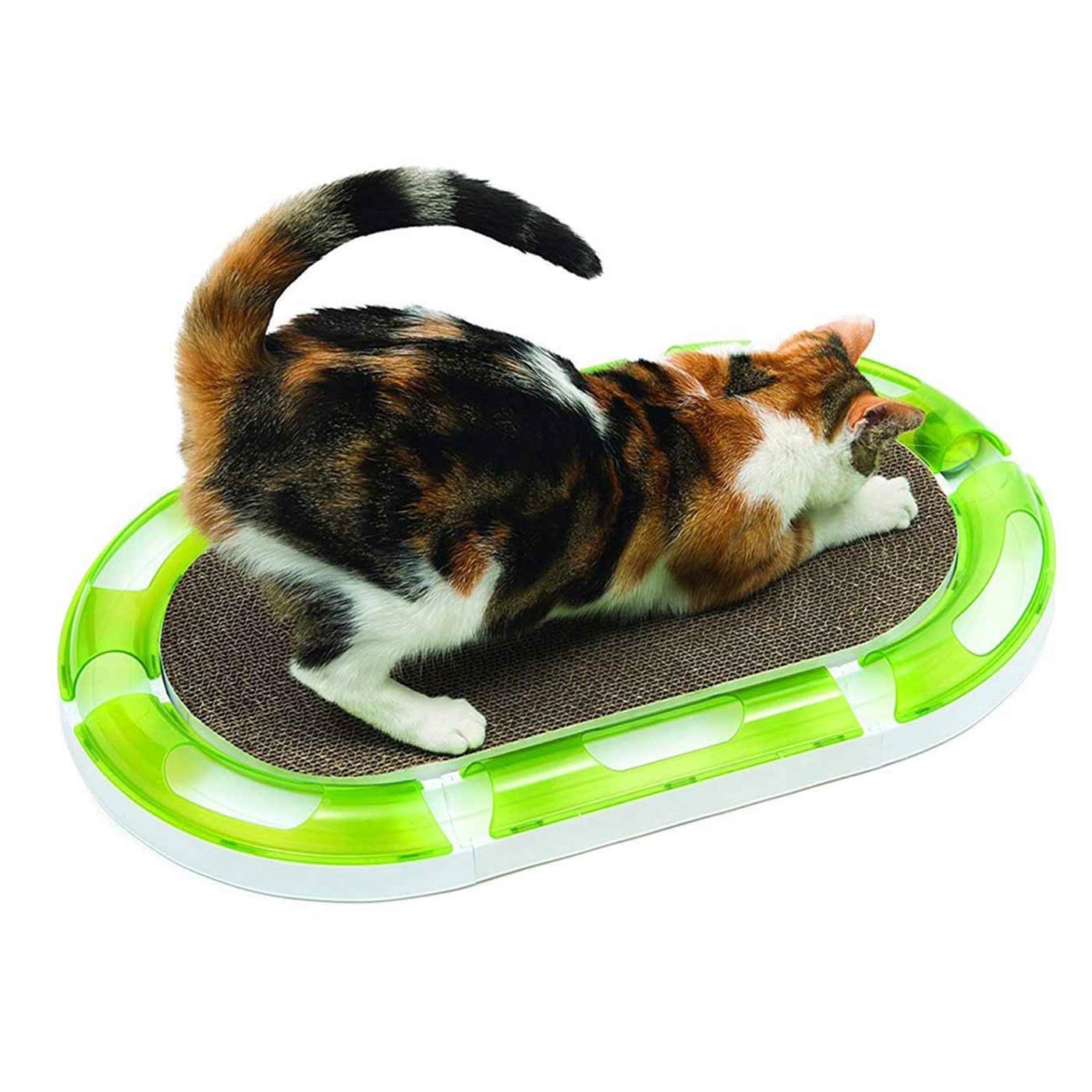 This Catit Oval Scratcher is perfect for cats that love to scratch and stretch. Composed of high density corrugated cardboard, it is inviting to your cat for a scratch and a lay down.