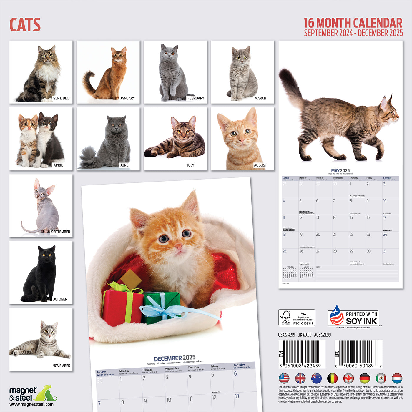 Stay organised and add some feline flair to your home with the Cats Modern Calendar 2025. This 16 month wall calendar features stunning images of cats for every month, along with clear grids and a notes section. The perfect gift for any cat lover to keep track of dates for the next year and a half.