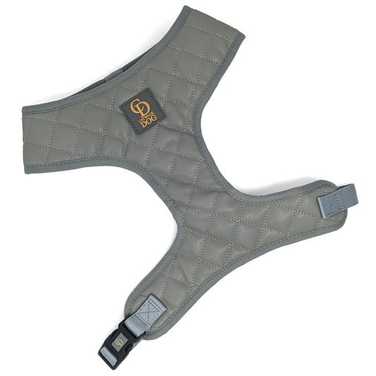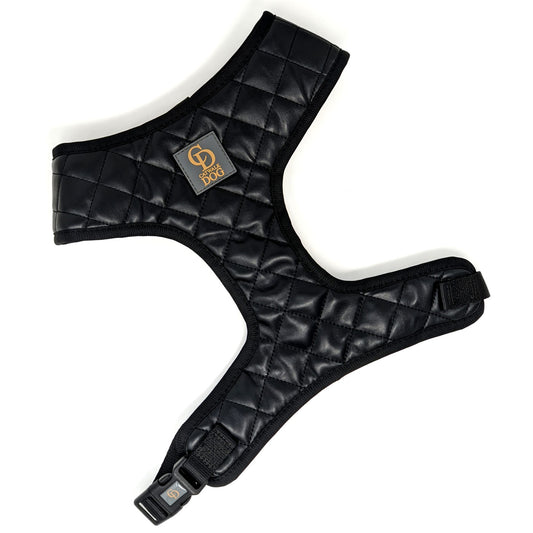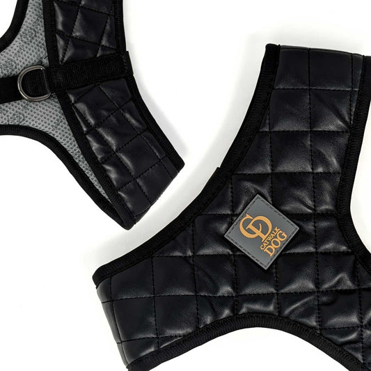 Simple but stylish quilted harness made of soft vegan leather outer and mesh inner for comfort. Matching lead and poo bag holders available and it comes in two colours and 4 sizes!