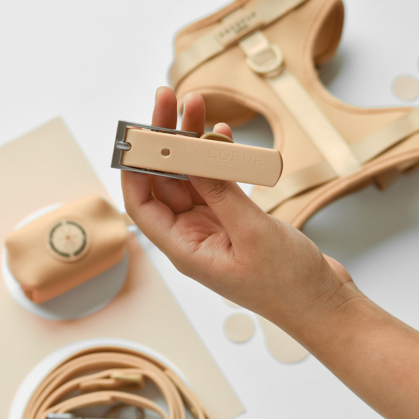 The Cocopup London Biscuit NAKD dog collar is a sophisticated way to adorn your four-legged friend. Crafted with a minimalist nude block colour, the wipeable and waterproof collar is adjustable for a perfect fit and has a durable D ring attachment for leads. Choose from seven neutral toned colours in four sizes, with a matching harness and accessories also available in the NAKD range.
