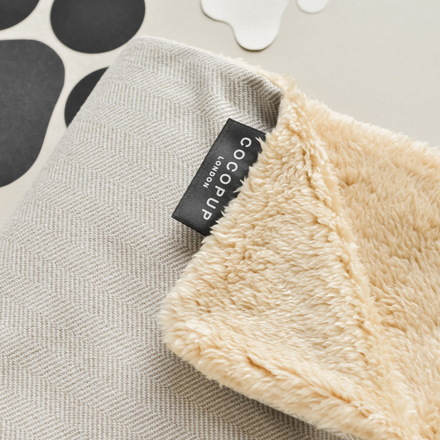 Keep your pup comfortable and stylish with the Cocopup London Brown Tweed Dog Blanket. Featuring a super soft, Herringbone Tweed exterior and a fluffy lining to get snuggled into, your pup will feel cozy and secure. Paired with its neutral brown colour, it will easily fit into any interior.