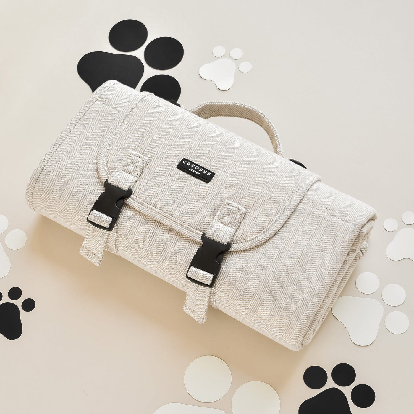 The Lords & Labradors Herringbone Tweed Travel Mat is perfect for on the go. This hardwearing travel mat is available in two sizes and three colours. It easily rolls up for storage, and features a convenient carrying handle for easy portability. The Herringbone Tweed Travel Mat can be used as a seat cover, boot mat or travel bed.