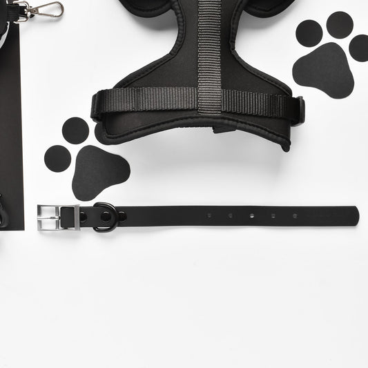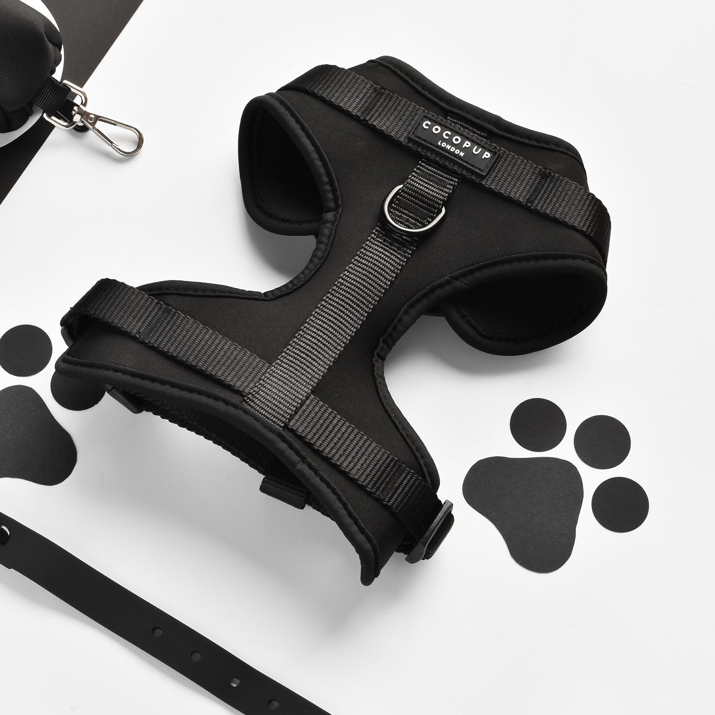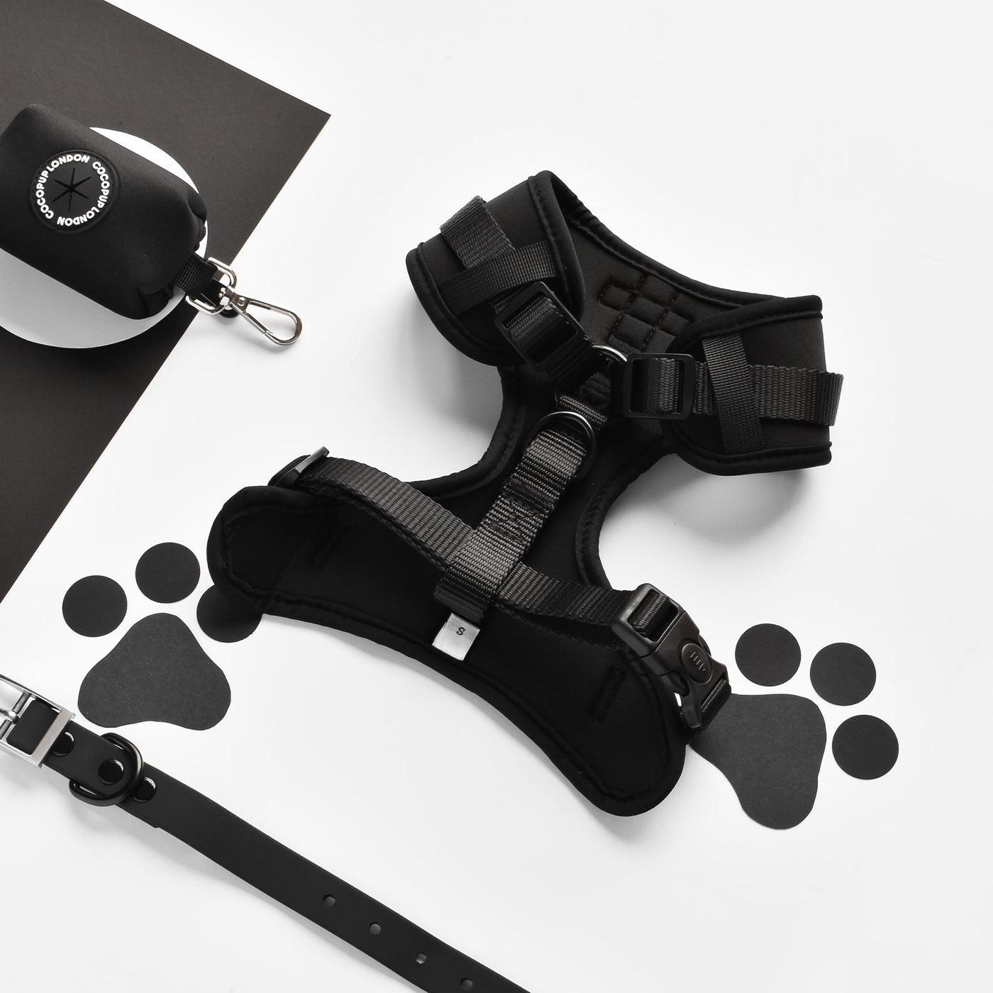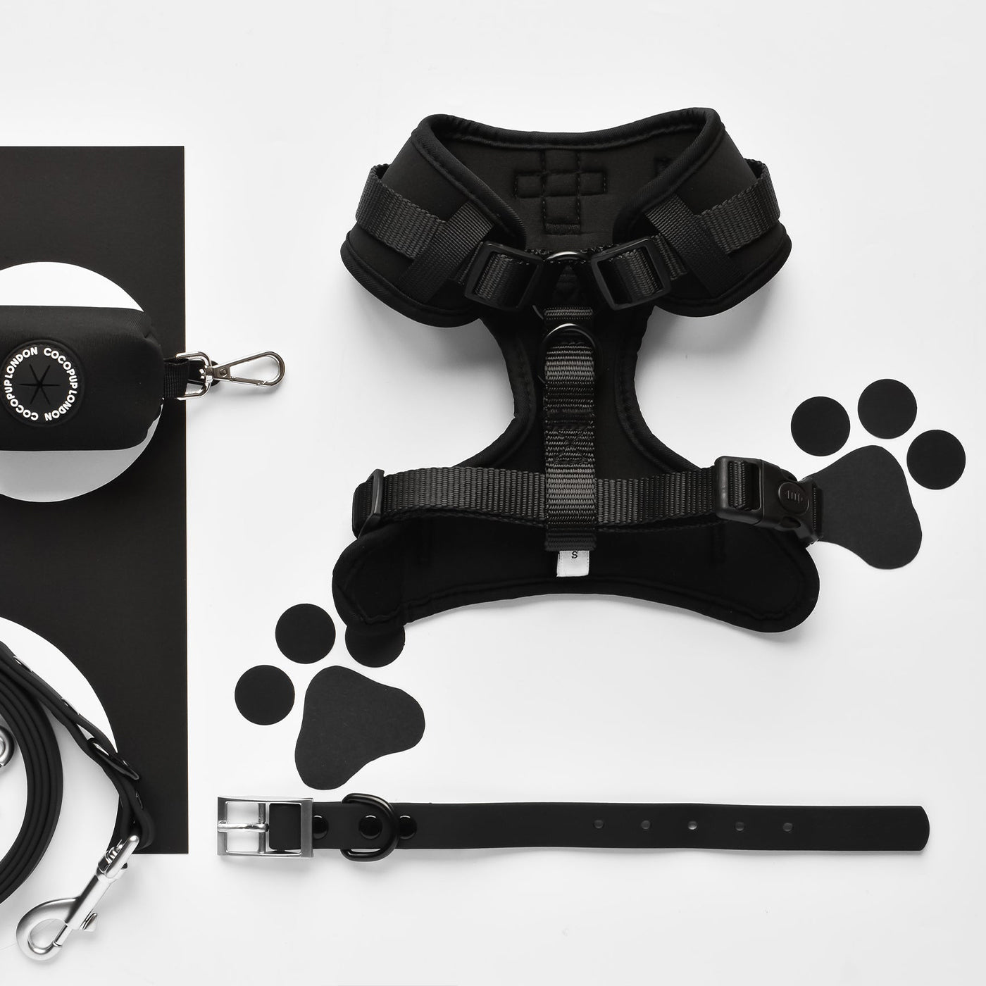 The Cocopup London Liquorice NAKD Adjustable Harness ensures your pup is walking in true luxury. The classic black colour blocking in the lightweight, comfortable and quick-drying fabric offers a sophisticated look with timeless appeal. Fully adjustable neck and chest straps ensures a tailored fit, while the safety locking feature provides added security. With 4 sizes and 7 colour options in the NAKD range, you can easily find the perfect style for your pooch. Collar, lead and accessories available to complete the look.