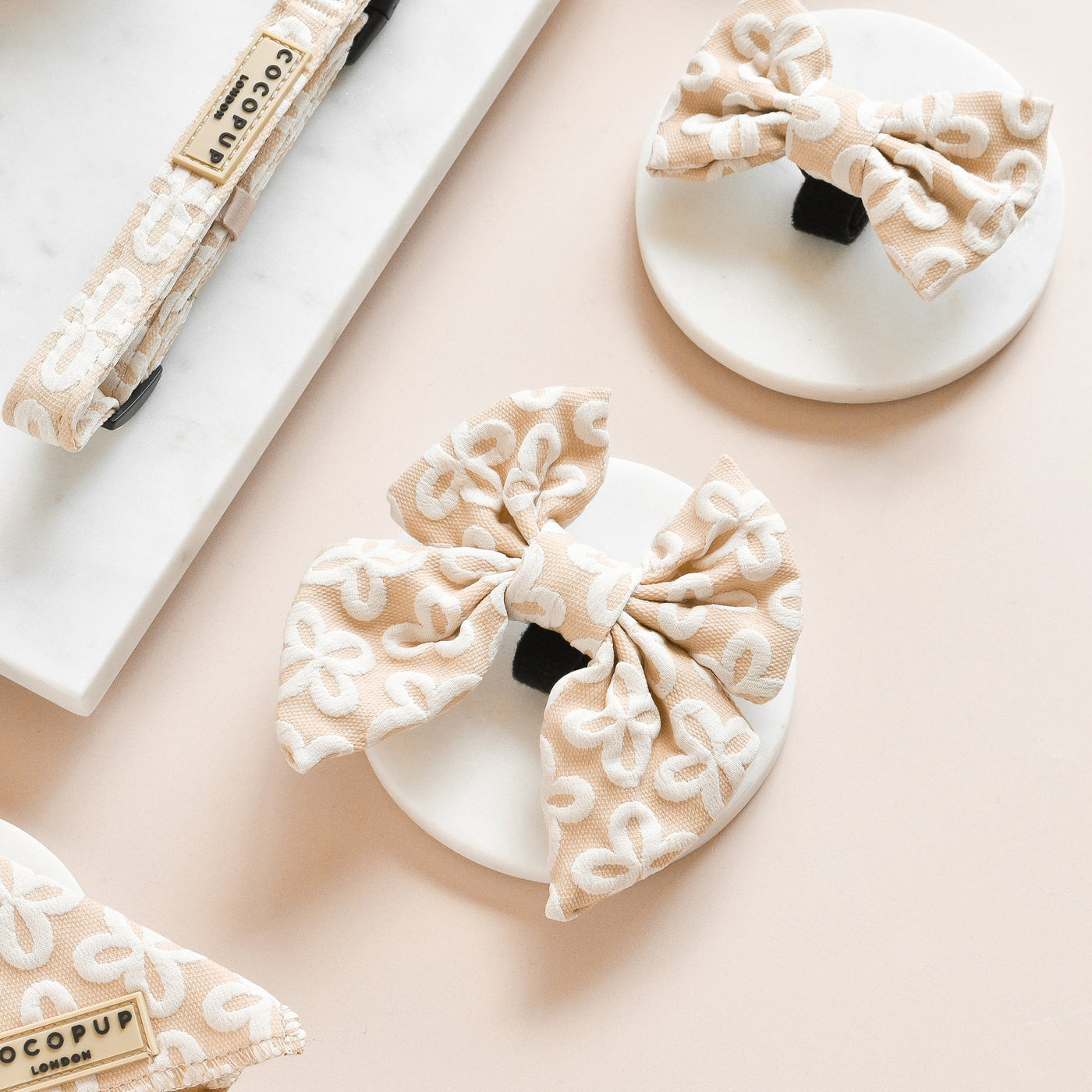 The Cocopup London Sage Tweed Bow Tie is a stylish accessory for your four-legged friend. Made of polyester fabric and with a neutral colour scheme, this bow tie has a Velcro fastening for easy use. Matching accessories are available to complete the look.