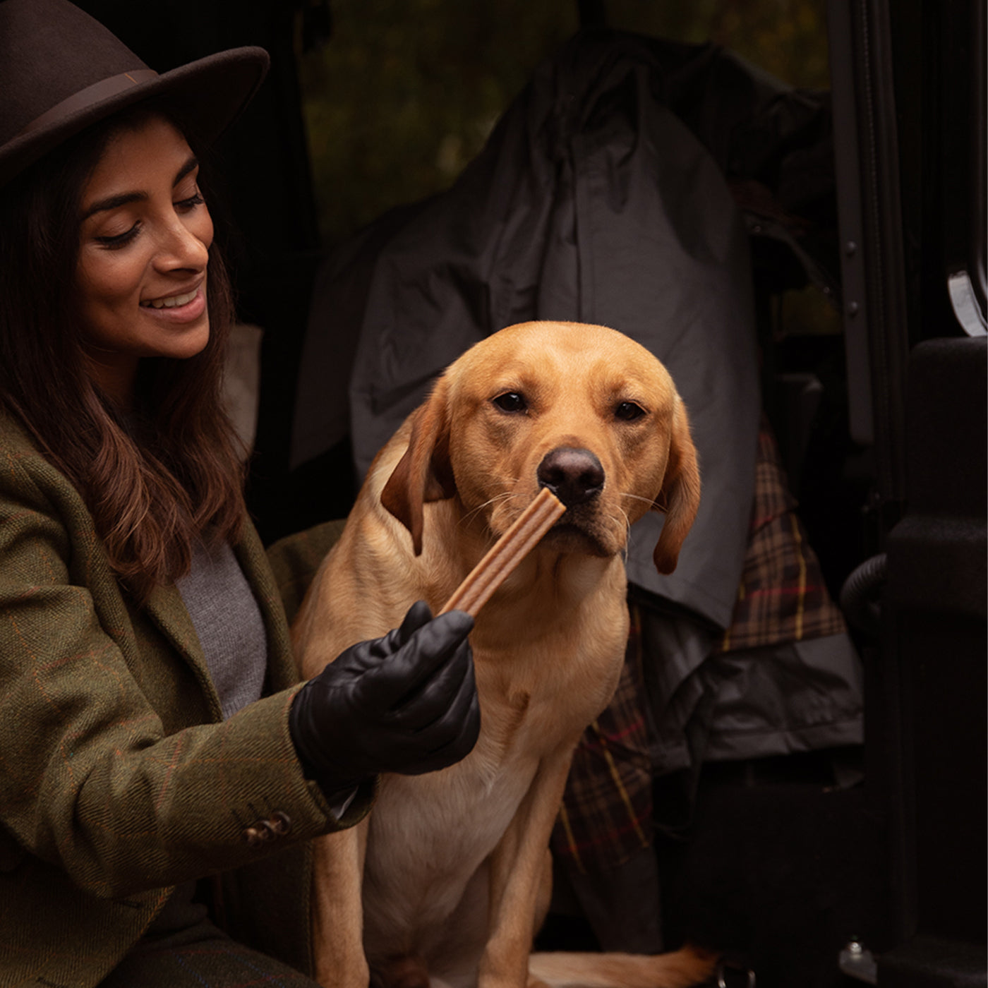 Discover Essential Foods Dental Delights Dog Treats! Delicious treats for the pup that gives your four-legged friend some delish dental attention. The pack of 12 sticks is an effective way to clean their chompers, plus they'll love the cosy moments that come with earning them! Woof!