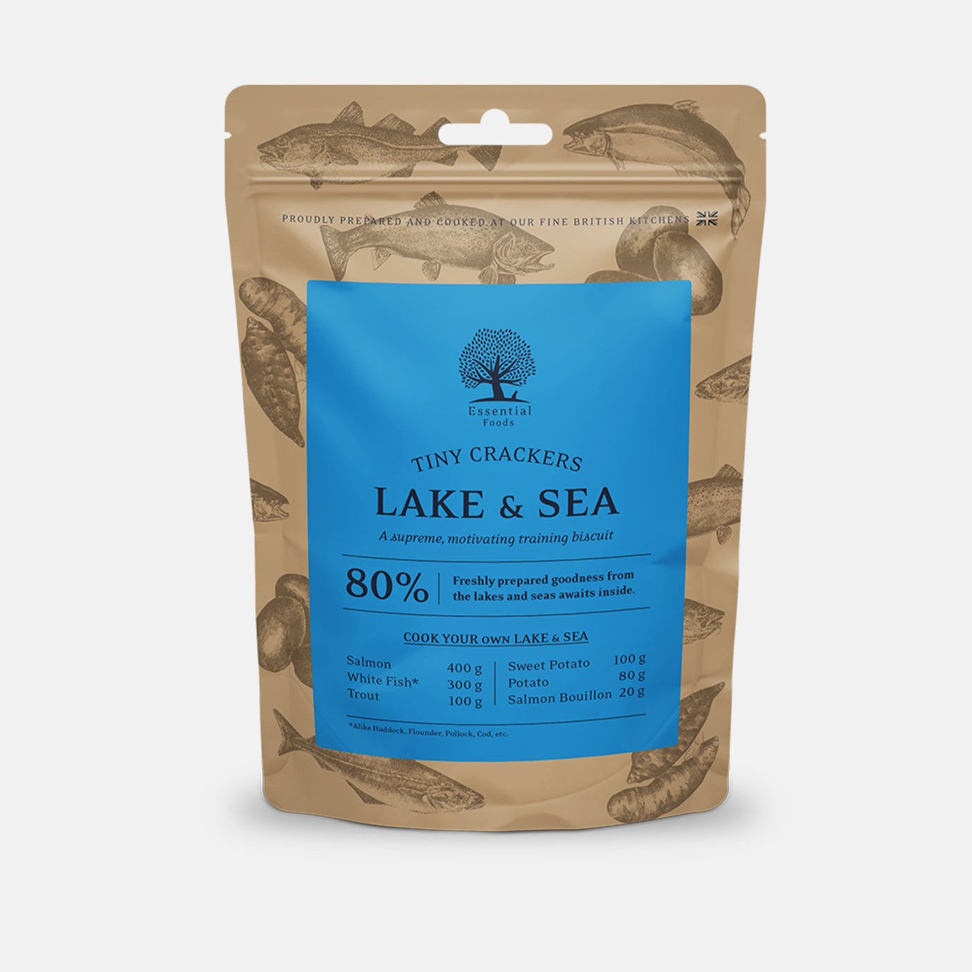 Snack your pup up with Essential Foods Lake & Sea Tiny Crackers Dog Treats! Made with 80% freshly prepared goodness, they're the tasty training biscuits you've been waiting for! The 100g pack is paw-fect for motivating your woofer when it comes to training. Time to have a cracker-ific good time!