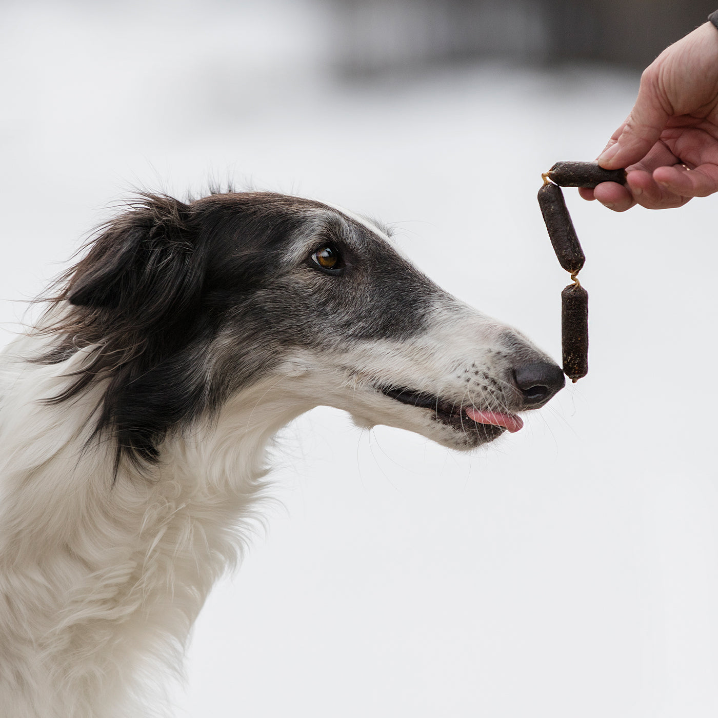 Reward that pup with some tail-waggingly tasty treats! Our Essential Foods Finest Venison & Duck Sausages are 8pcs of scrumptiousness made with 100% air-dried British venison and duck. Perfect for training, walks and special occasions – your dog won't "ruff" it!