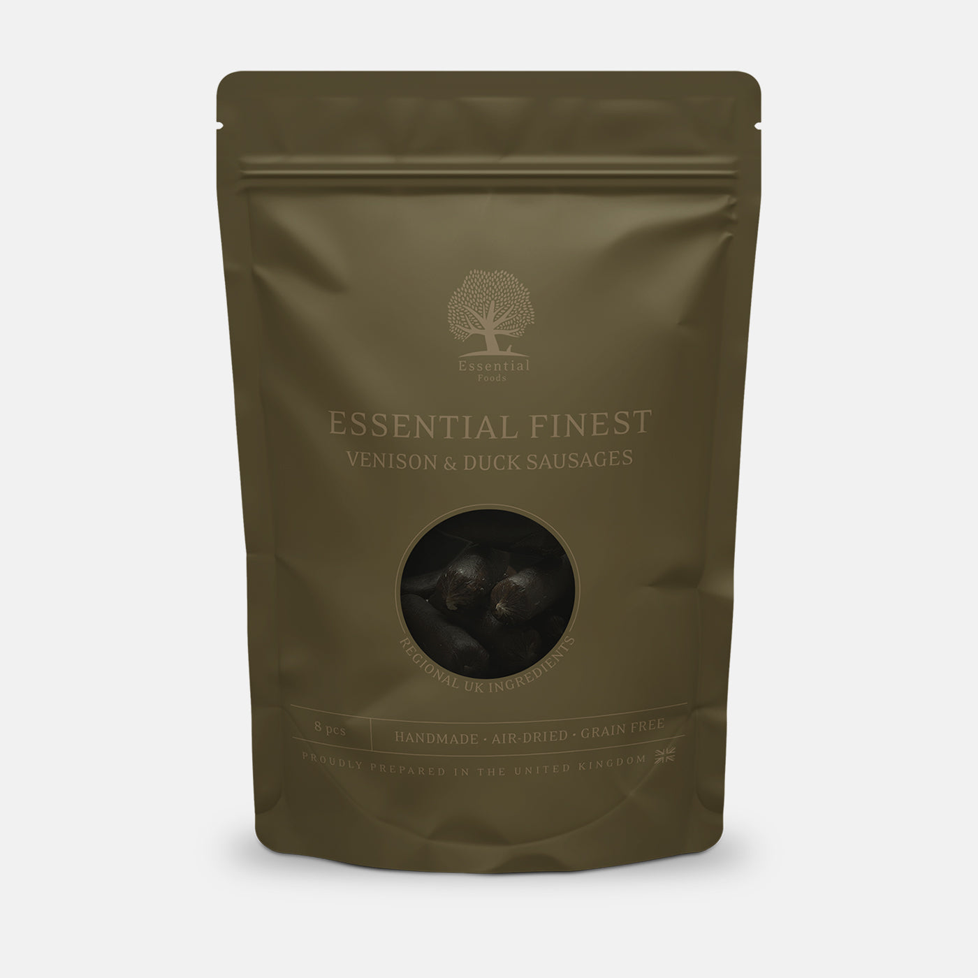 Essential Foods Finest Venison & Duck Sausages Dog Treats 8pcs