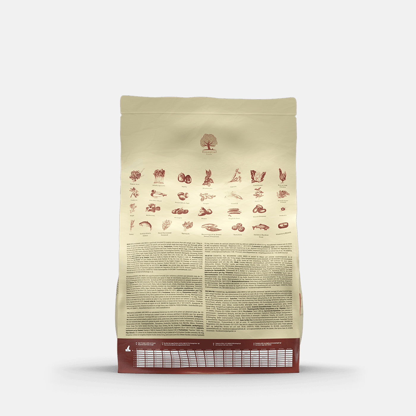 Welcome your large-breed pup to the world of food with Essential Foods The Beginning Large Breed Dry Dog Food! Formulated with only the finest ingredients, this grain-free meal is an exceptional way to keep your pup's sugar stable while supplying them with the nutrition they need to kick start their growth. Made with fresh chicken, duck, salmon, and trout, this pup-tastic food is available in 3kg and 10kg bags