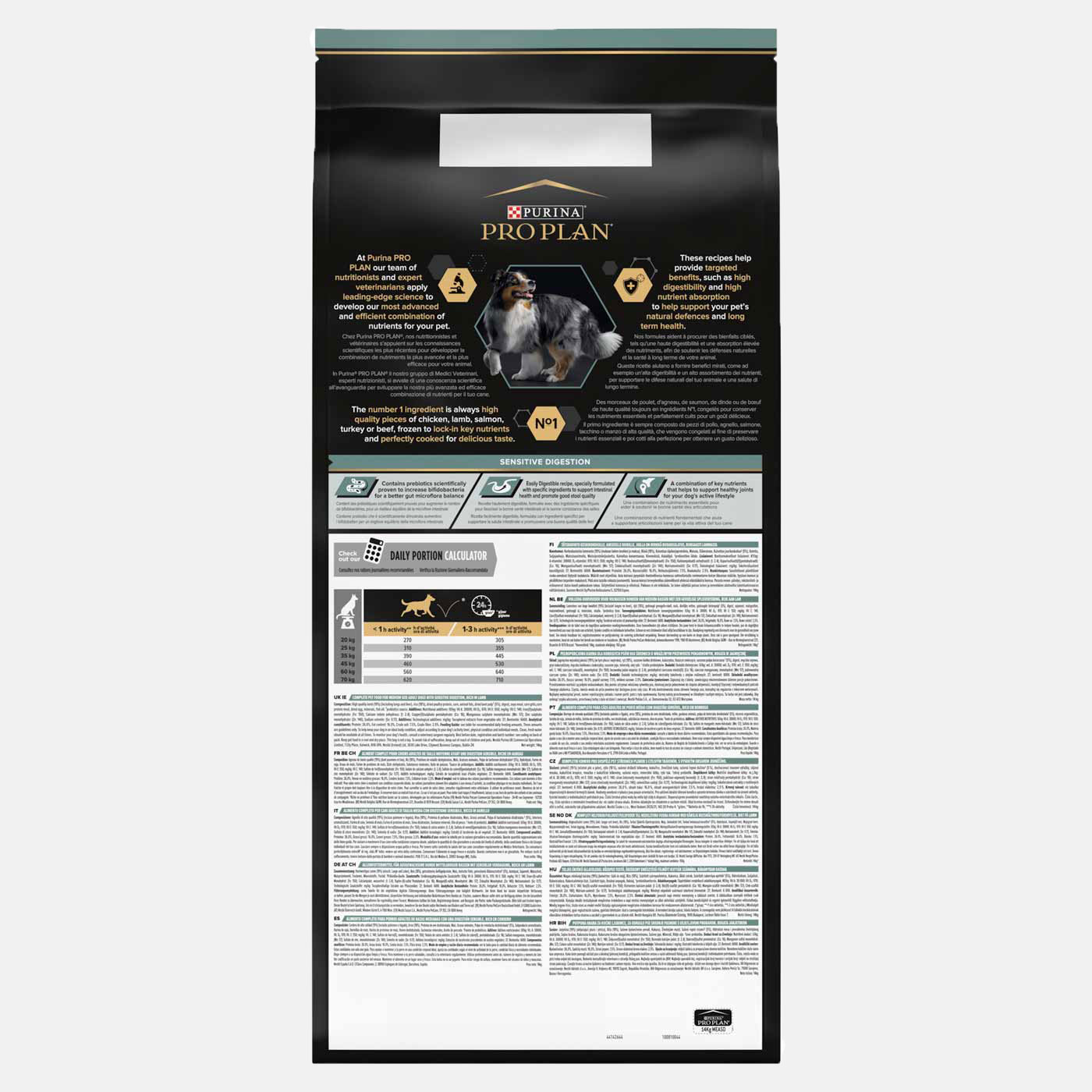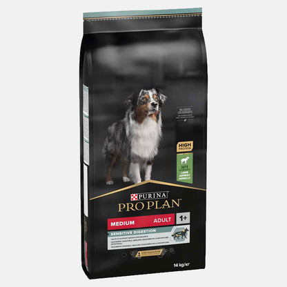 Treat your four-legged friend to PRO PLAN Medium Adult Sensitive Digestion Dry Dog Food with Lamb 14kg! This packed 14kg bag of delicious dog food contains real lamb, is high in protein, and has a specially developed, easily digestible recipe that'll have your pup's tummy feeling totally satisfied - not to mention being a real treat for those taste-buds. Keep your pup in top condition while promoting a better gut with PRO PLAN, because we all know happy pups come from a healthy gut!