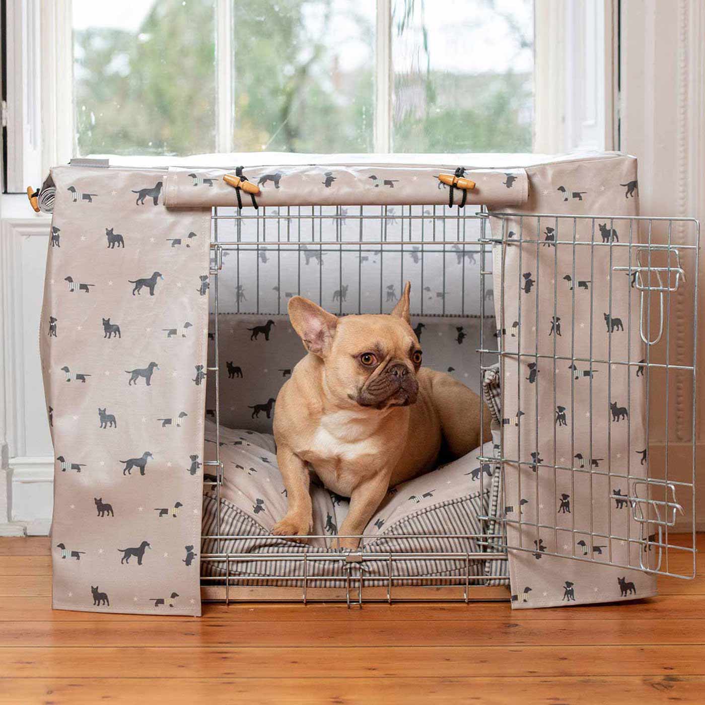 Our cotton dog crate covers are lovingly handmade in our UK workshop. Alongside the crate covers, we also make a matching range of dog cushions and bumpers so you can make your dog’s crate the cosiest luxury dog bed imaginable. The crate covers come in 5 sizes, from small (24”) up to XXL (48”) to fit ONLY Lords & Labradors heavy duty crates. If you have a different brand crate or a L&L sliding door crate, please do get in touch as we can make bespoke crate covers to order and fit any size crate!