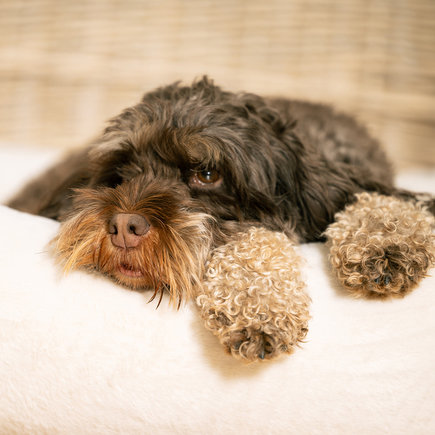 This luxurious cream faux-fur box bed is the perfect resting spot for your beloved canine companion. Crafted from a soft, plush fabric, it offers an incomparably comfortable and cosy haven for your pet. It features a removable inner cushion for easy cleaning, as well as raised, soft sides for those dogs that love to rest their head while snoozing. Tried and tested, this bed is available in three sizes, ensuring a perfect fit for any pup.
