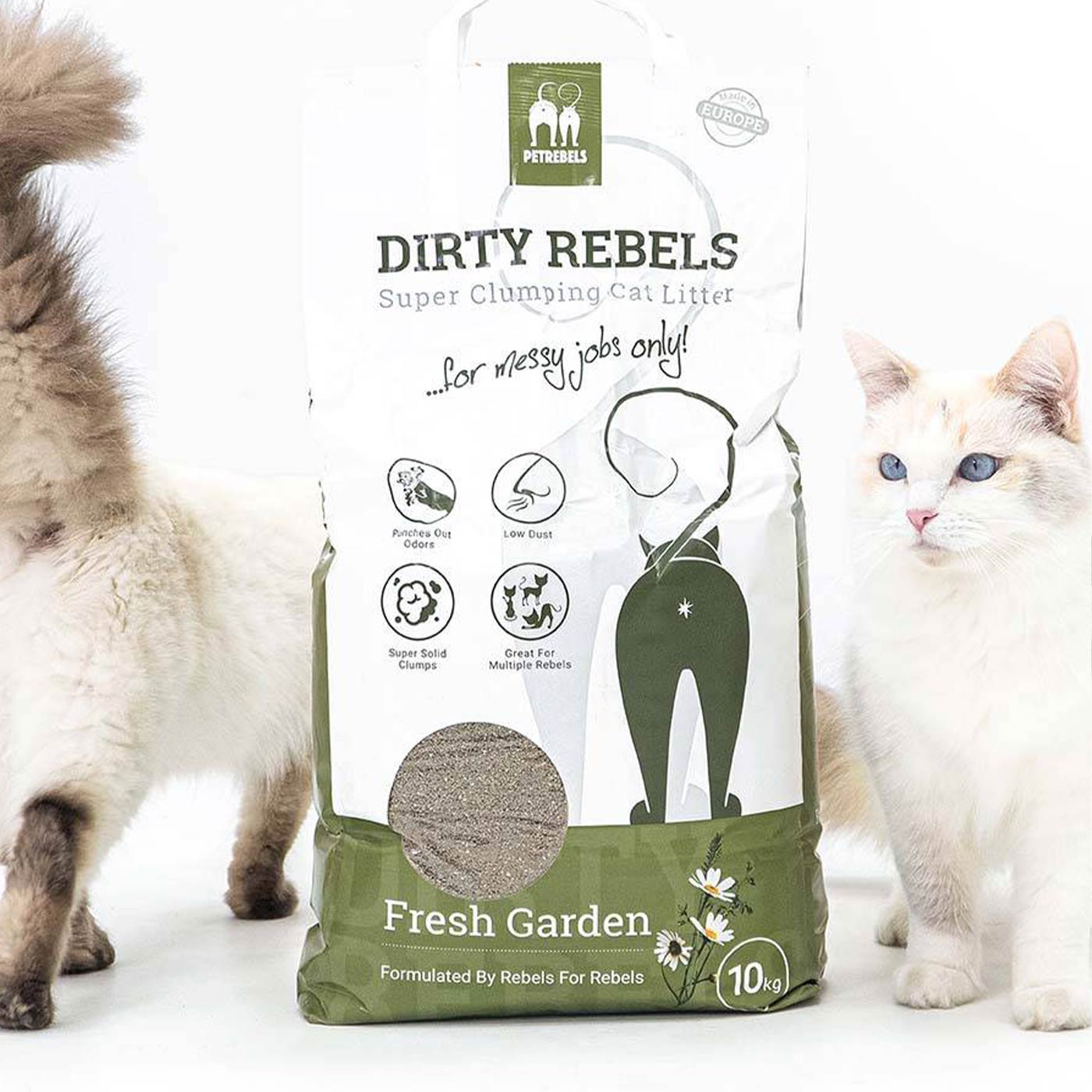 Dirty Rebels Fresh Garden Cat Litter is 100% natural and provides a fresh garden scent. It absorbs 4x its volume and forms solid clumps immediately, making it easy to shovel out of the litter box. Enjoy a clean and fresh smelling home with this highly effective cat litter.