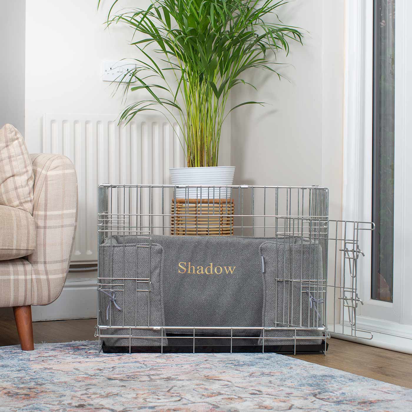 Dog Crate Bumper in Pewter Herringbone Tweed by Lords & Labradors