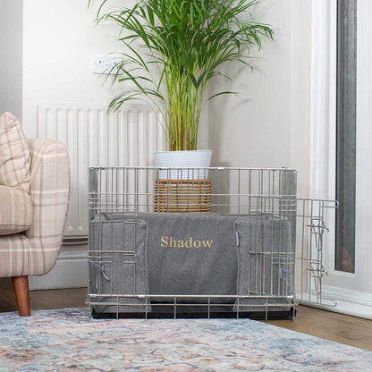 The tweed is made from a polyester blend which makes the covers durable and washable on a delicate machine cycle. A bumper makes a great addition to your dog crate, as it makes the inside walls super comfortable and den-like. Crate training is an integral part of your puppy’s development and it’s important to make the crate as cosy and inviting as you can. The bumper will make the walls of the crate soft and snuggly, and also help stop draughts coming through the bars. Team the Pewter Herringbone crate bumper with one of our matching dog cushions and covers to create the ultimate luxury dog bed.