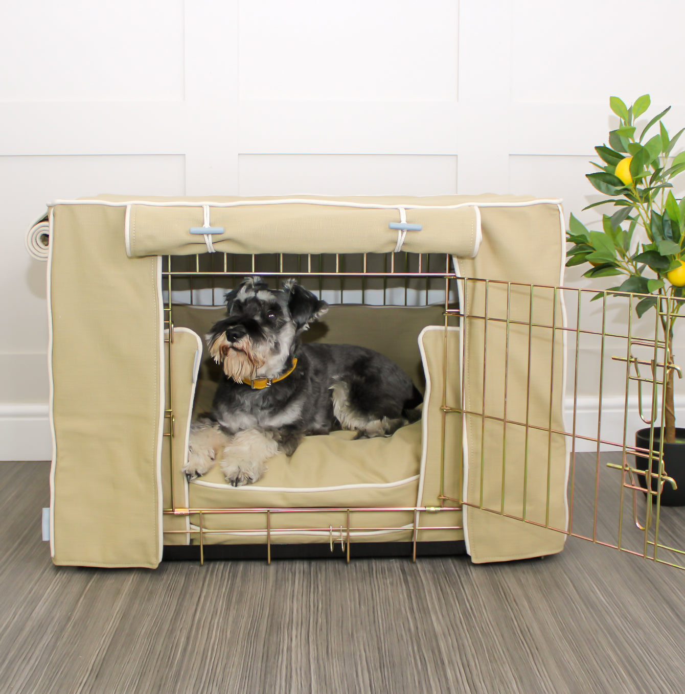The Stone colourway is a beautifully sophisticated neutral shade that will look fabulous in any home! We have created the bumpers with practicality, as well as style, in mind. The 100% cotton zip-off cover is machine washable on a delicate cycle. The bumpers make a great addition to any dog crate set-up, making the inside super cosy and comfortable. Crate training is an important part of your puppy’s development so making the crate as inviting as possible is essential. Team our dog crate bumper with a matching Savanna dog crate cushion and crate cover to create the ultimate luxury dog bed.