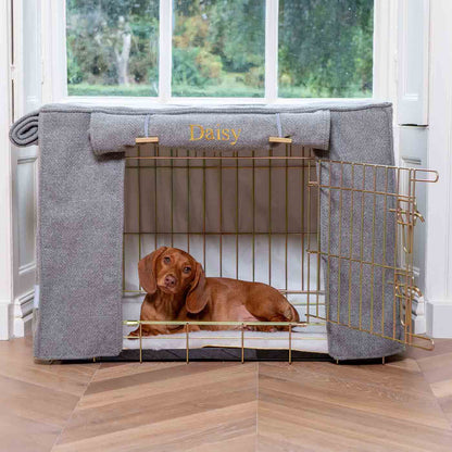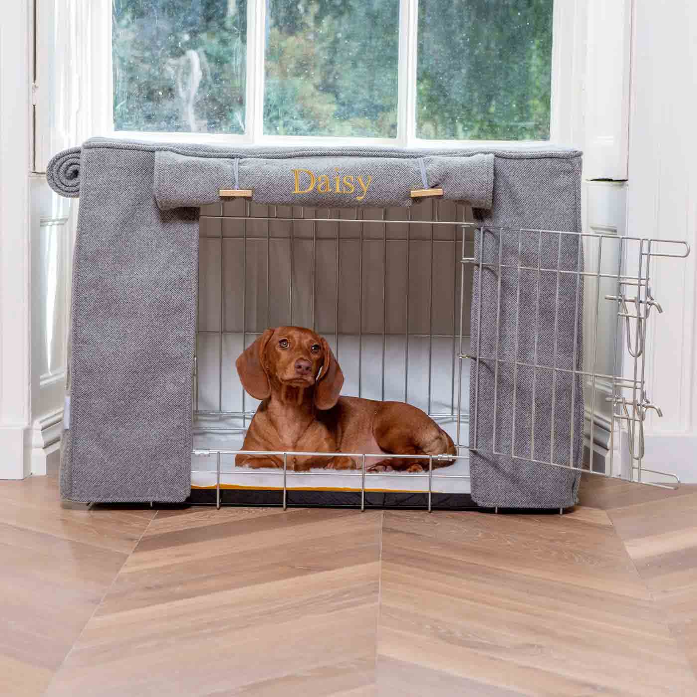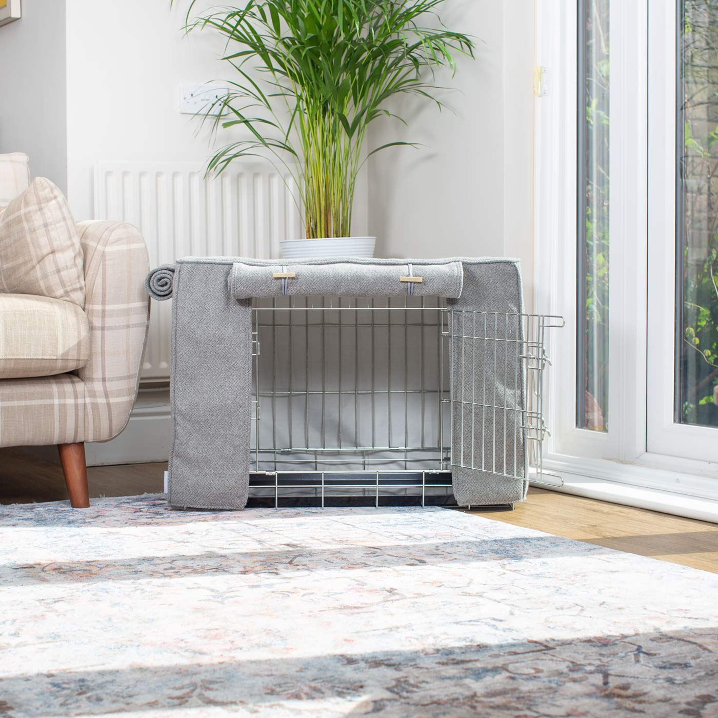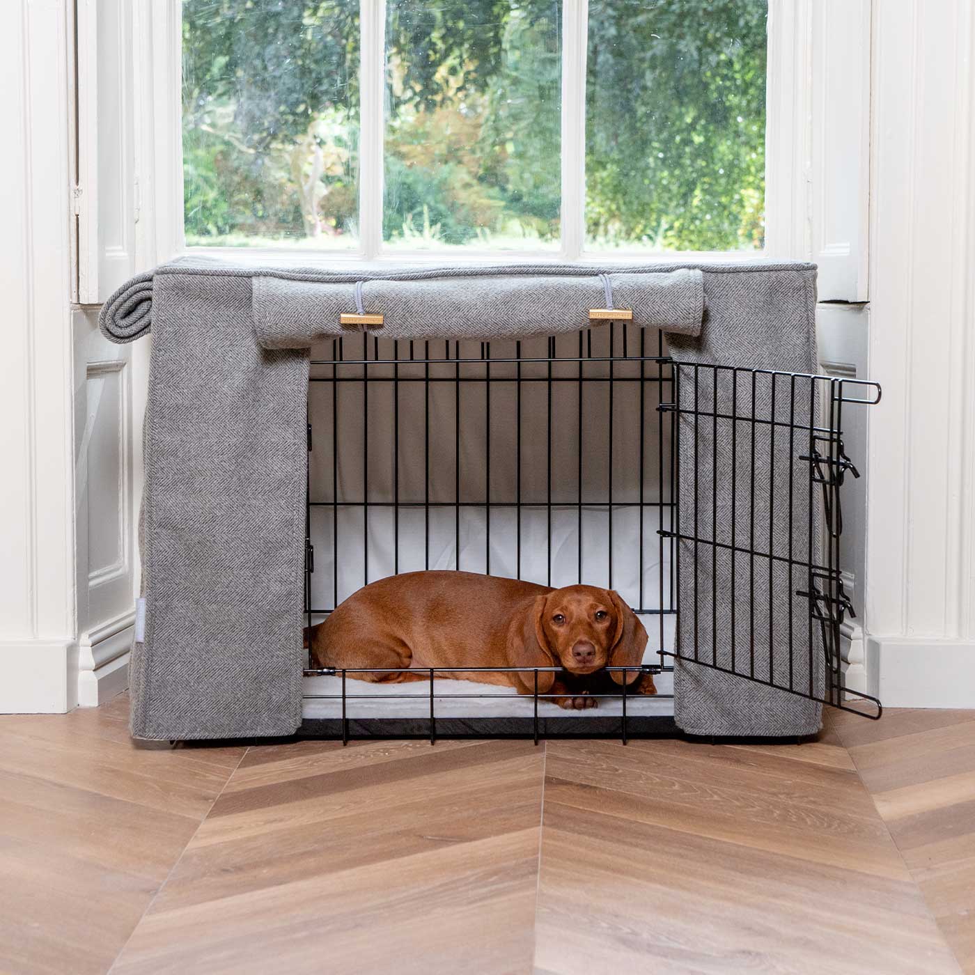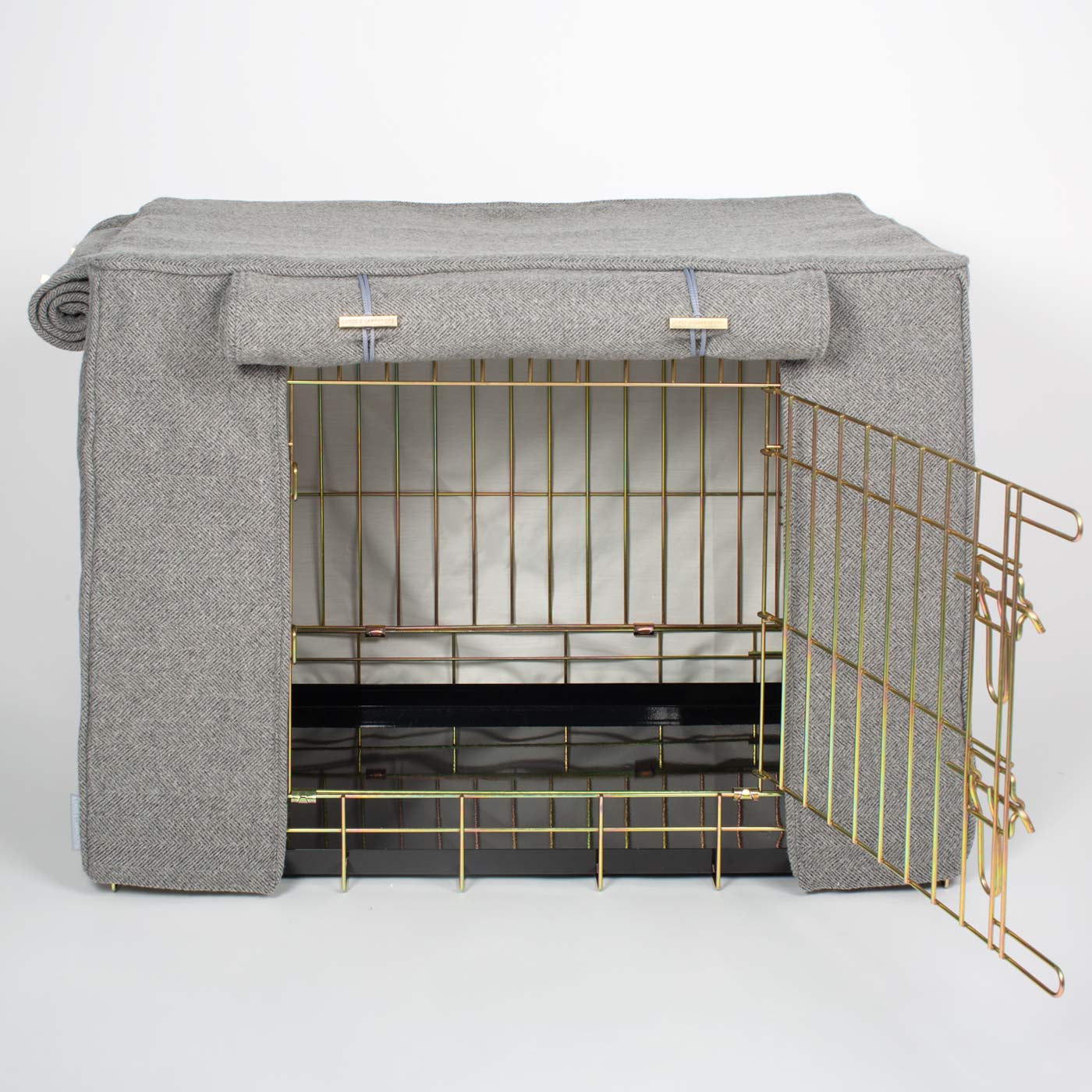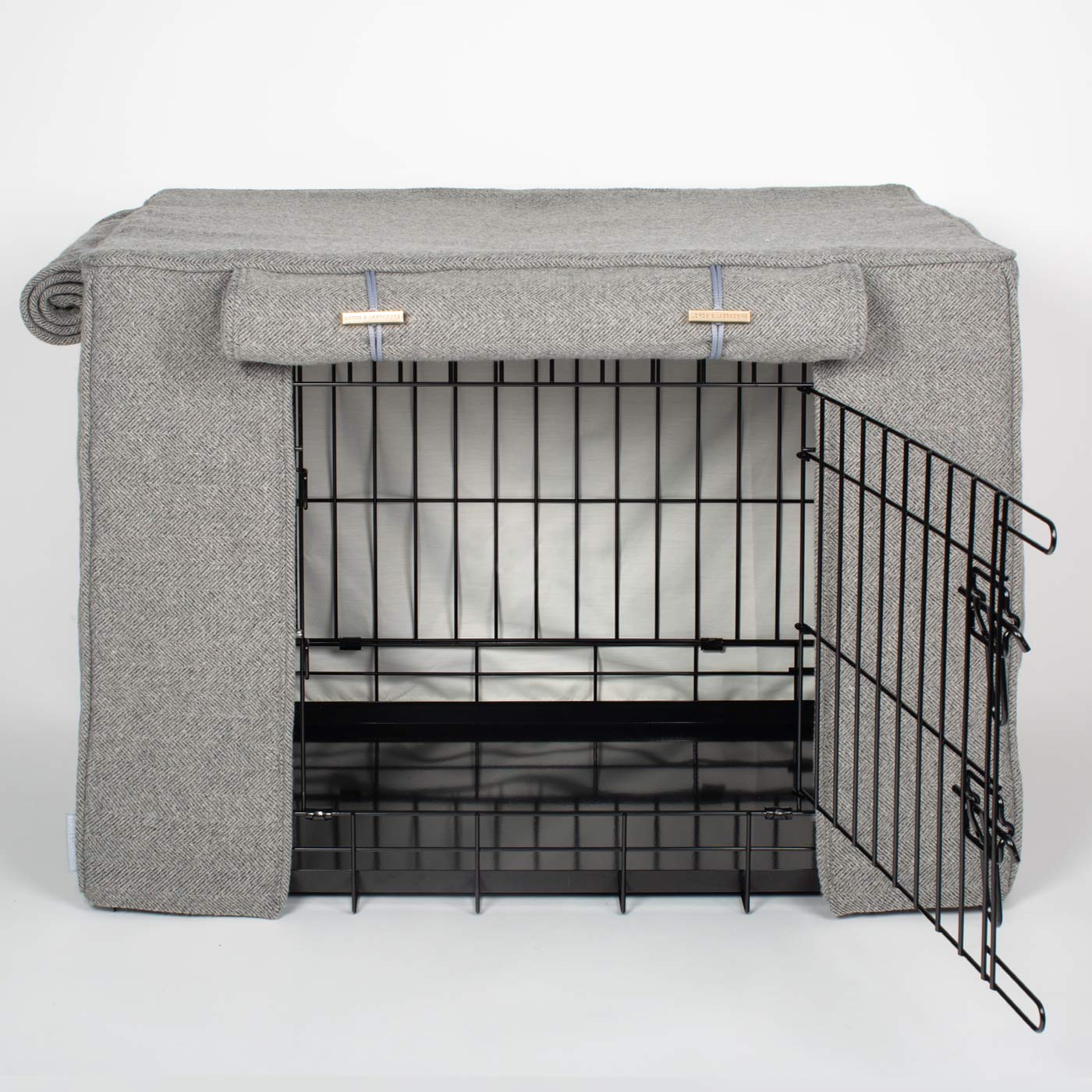 Dog Crate Cover in Pewter Herringbone Tweed by Lords & Labradors