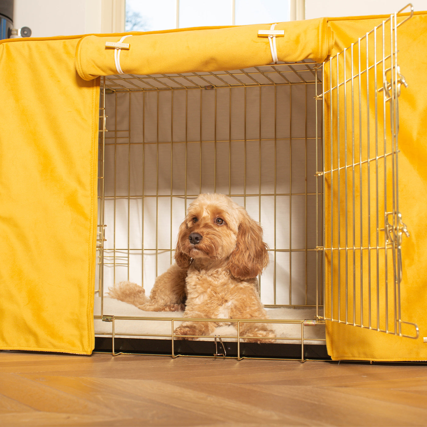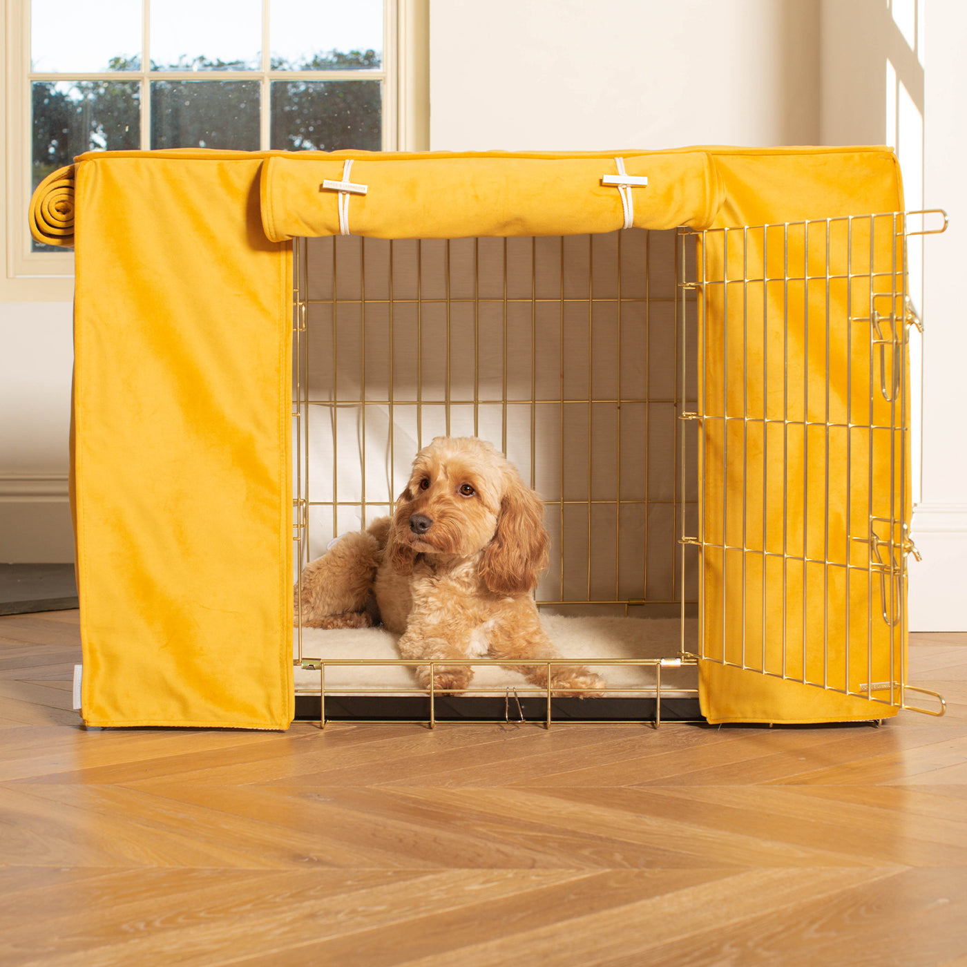 Dog Crate Cover In Saffron Velvet by Lords & Labradors
