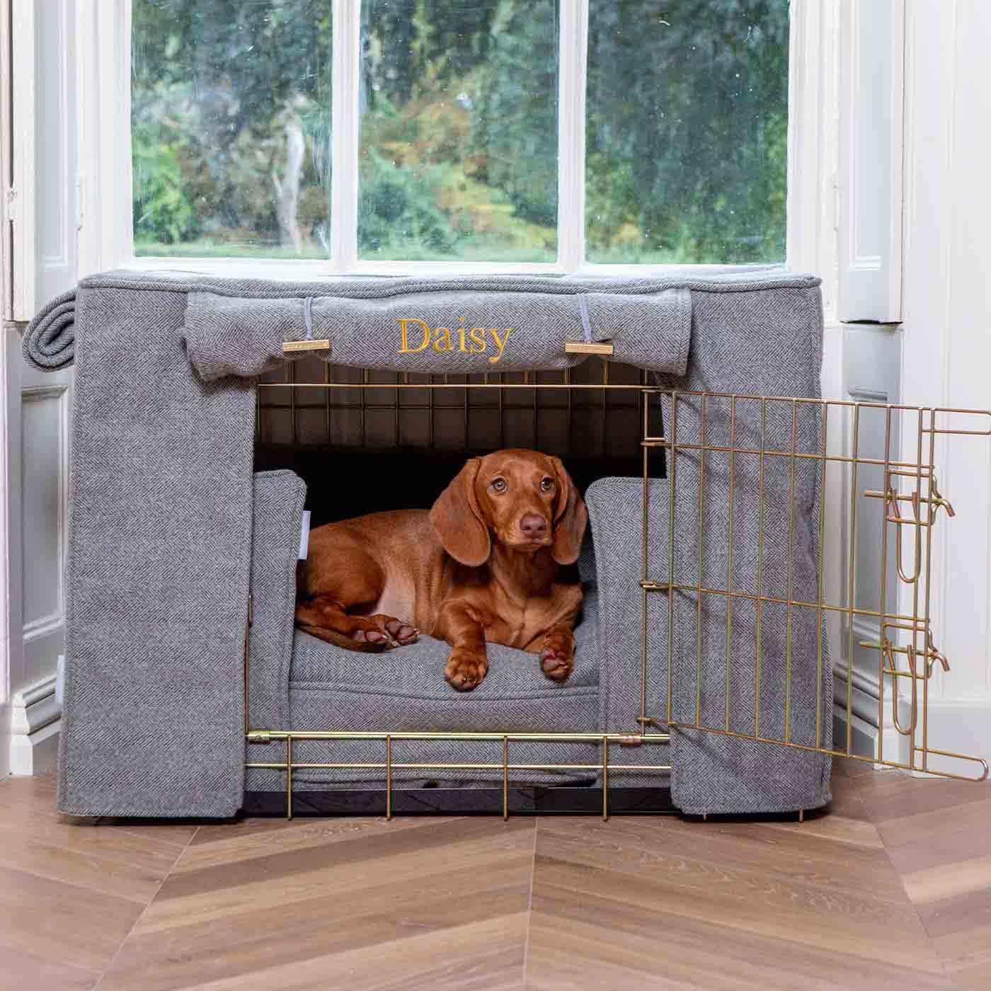 Dog Crate Set In Pewter Herringbone Tweed by Lords & Labradors