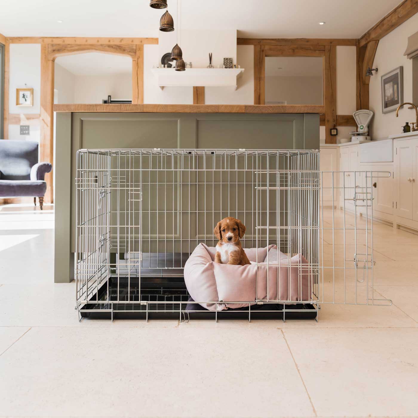 Dog Crate with Cosy & Calming Puppy Crate Bed in Blossom Velvet by Lords & Labradors