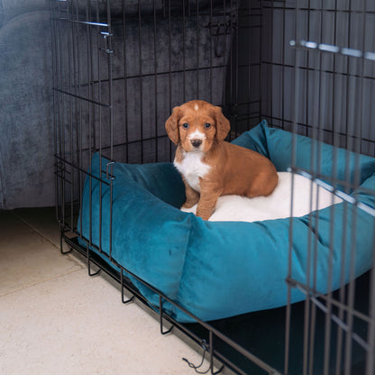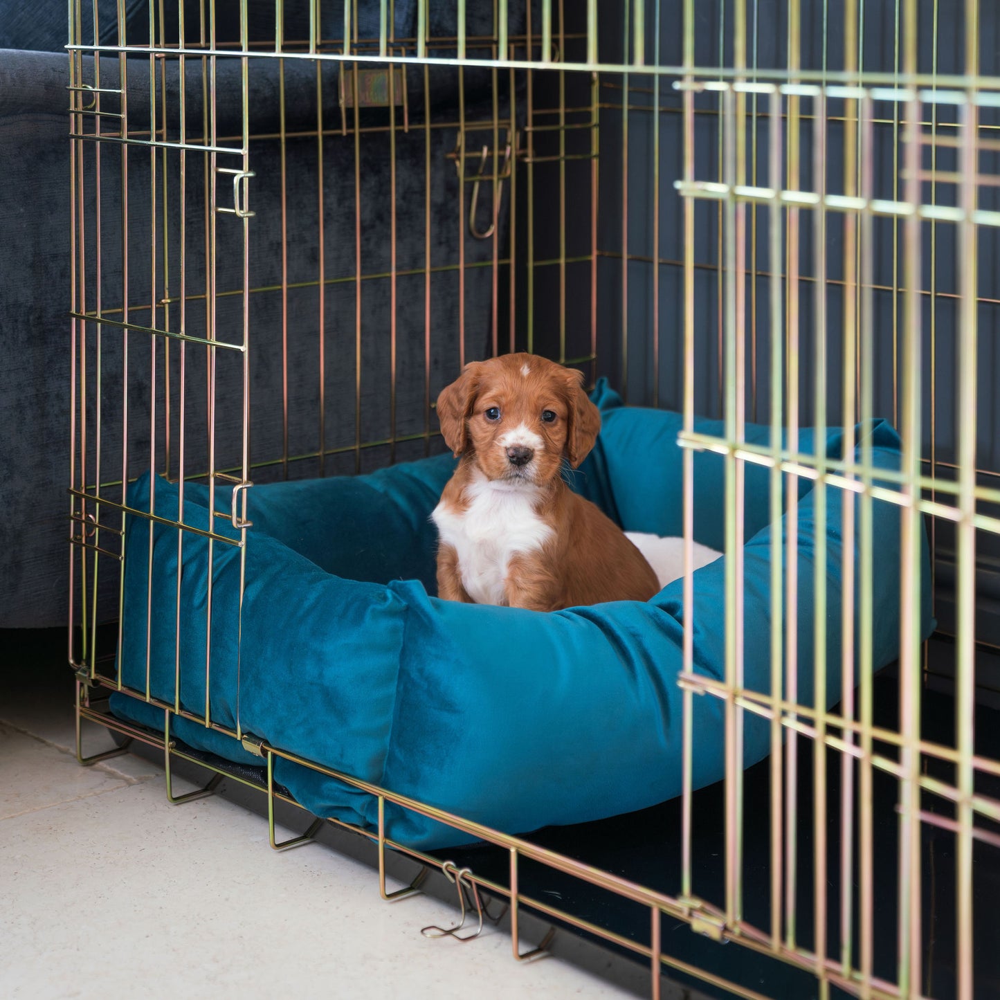 Dog Crate with Cosy & Calming Puppy Crate Bed in Marine Velvet by Lords & Labradors