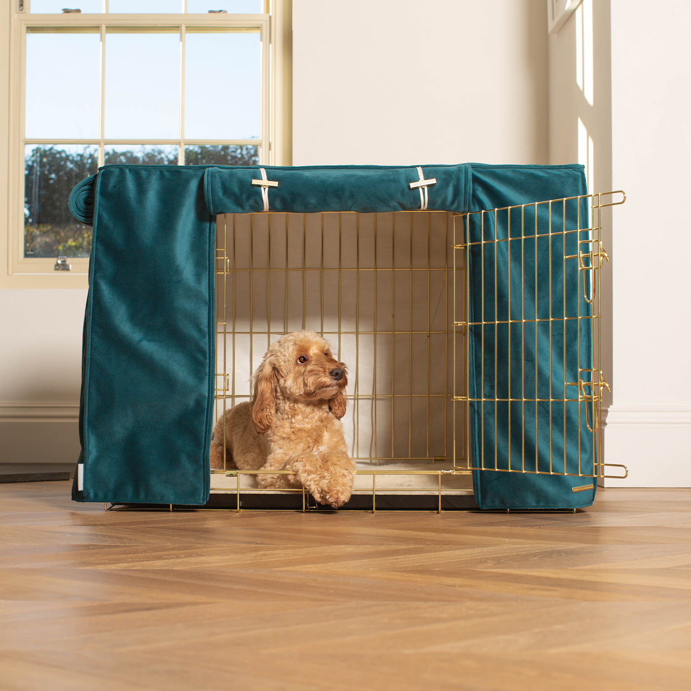 Dog Crate with Crate Cover in Marine Velvet by Lords & Labradors
