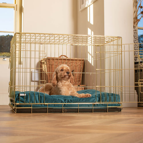 Dog Crate with Cushion & Bumper in Marine Velvet by Lords & Labradors